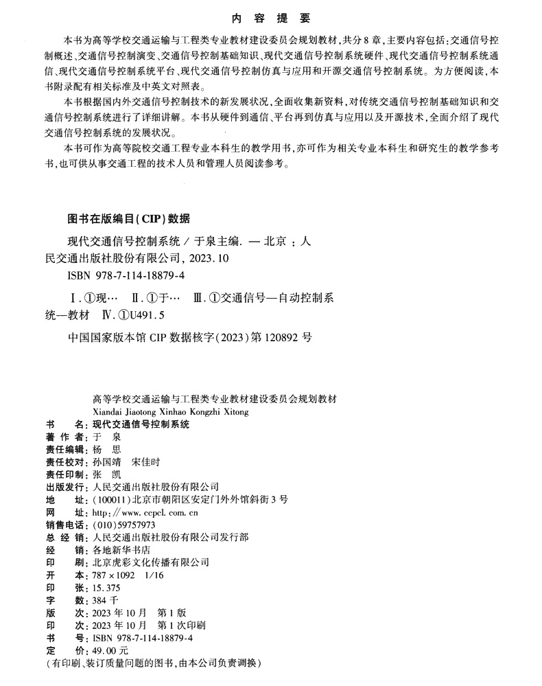 书名:现代交通信号控制系统