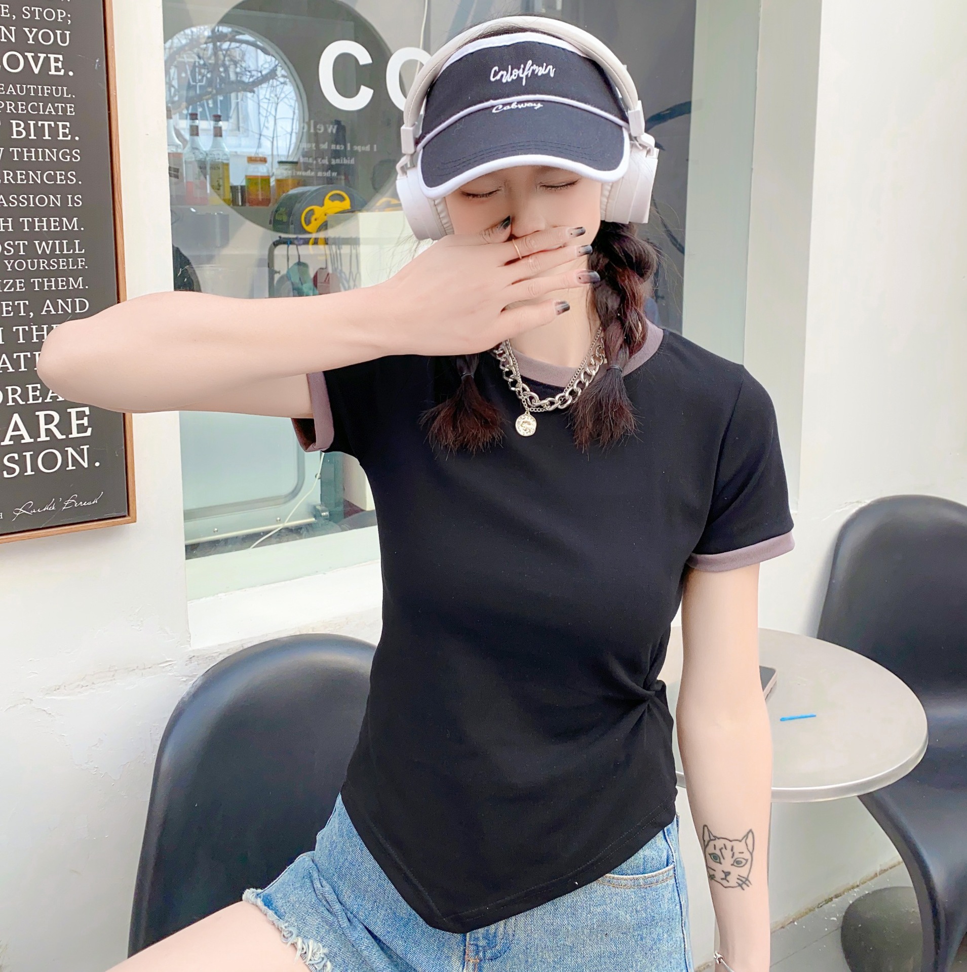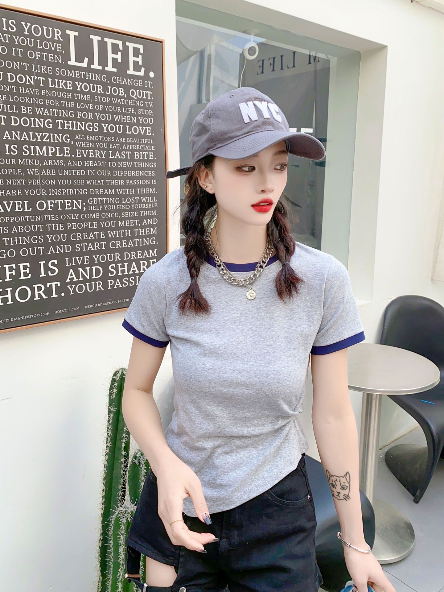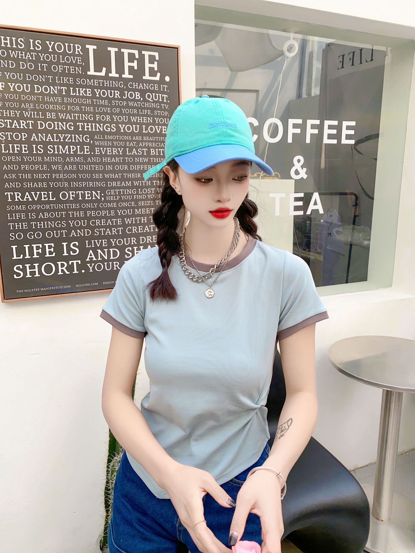 2023新款夏季爆款复古港味chic辣妹收腰短款内搭上衣3.9版