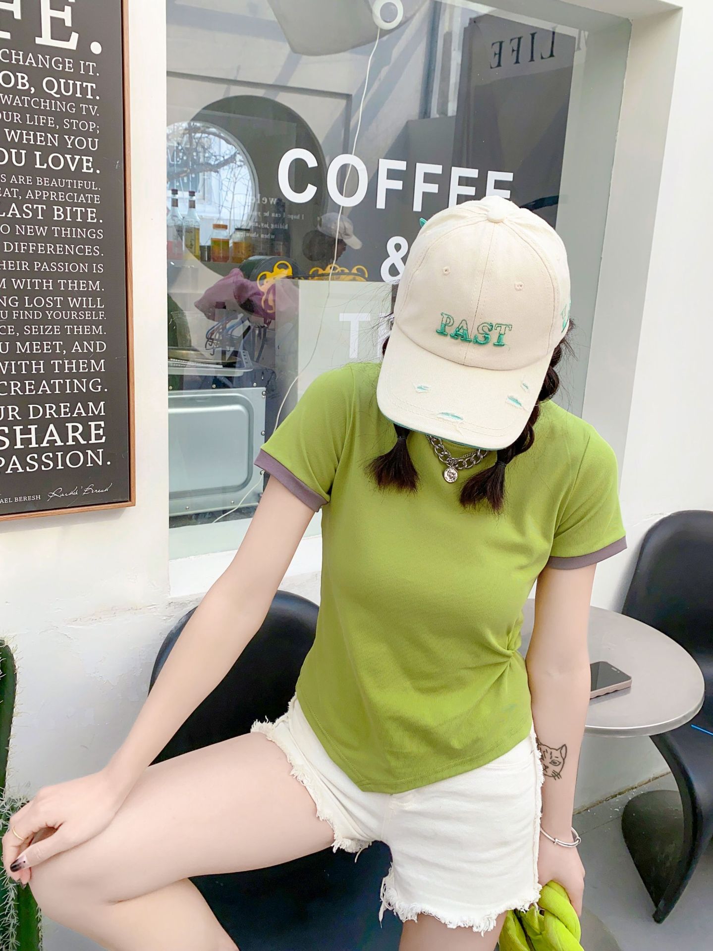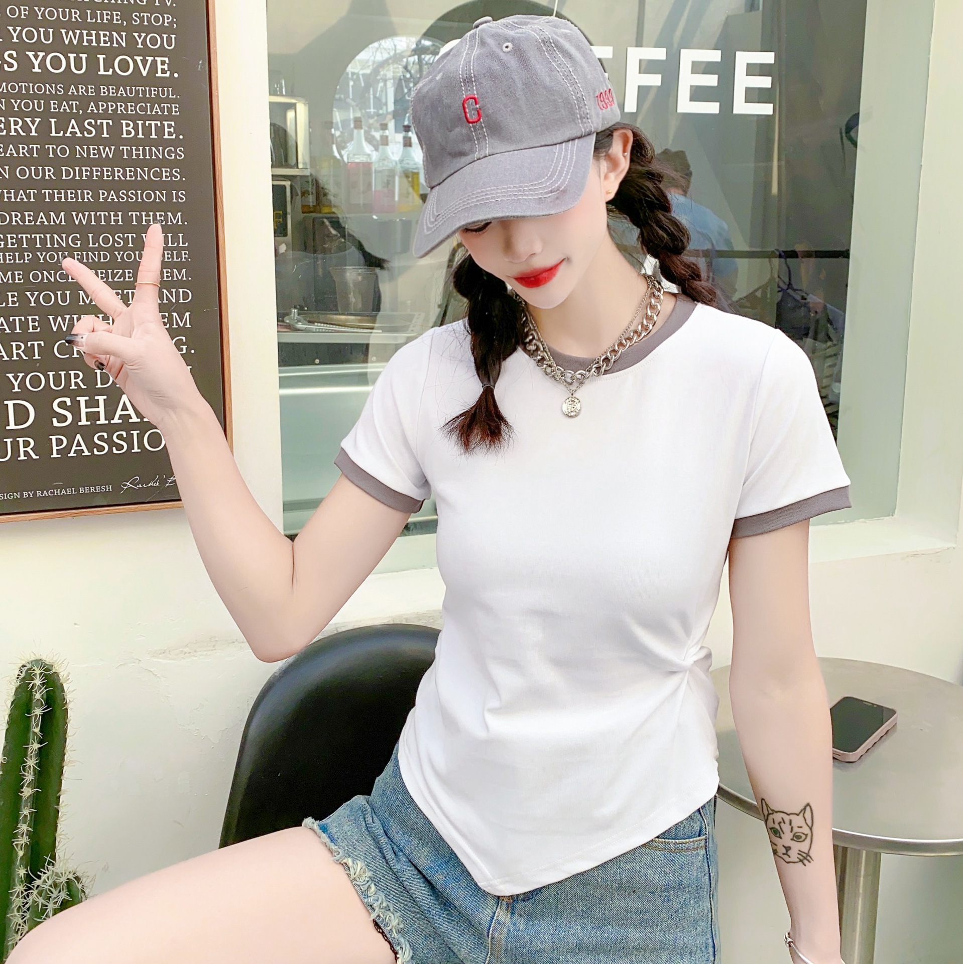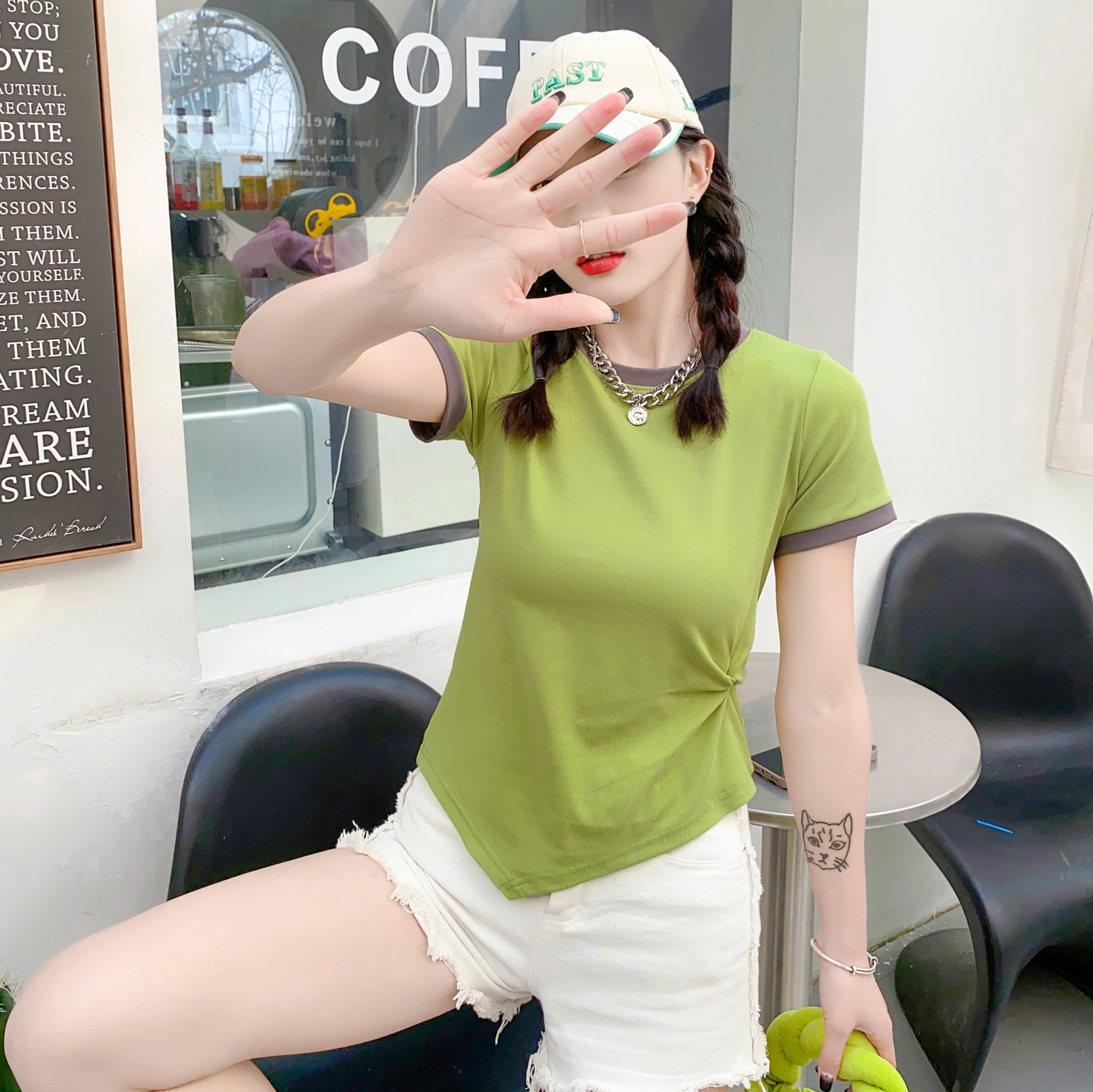 2023新款夏季爆款复古港味chic辣妹收腰短款内搭上衣3.9版