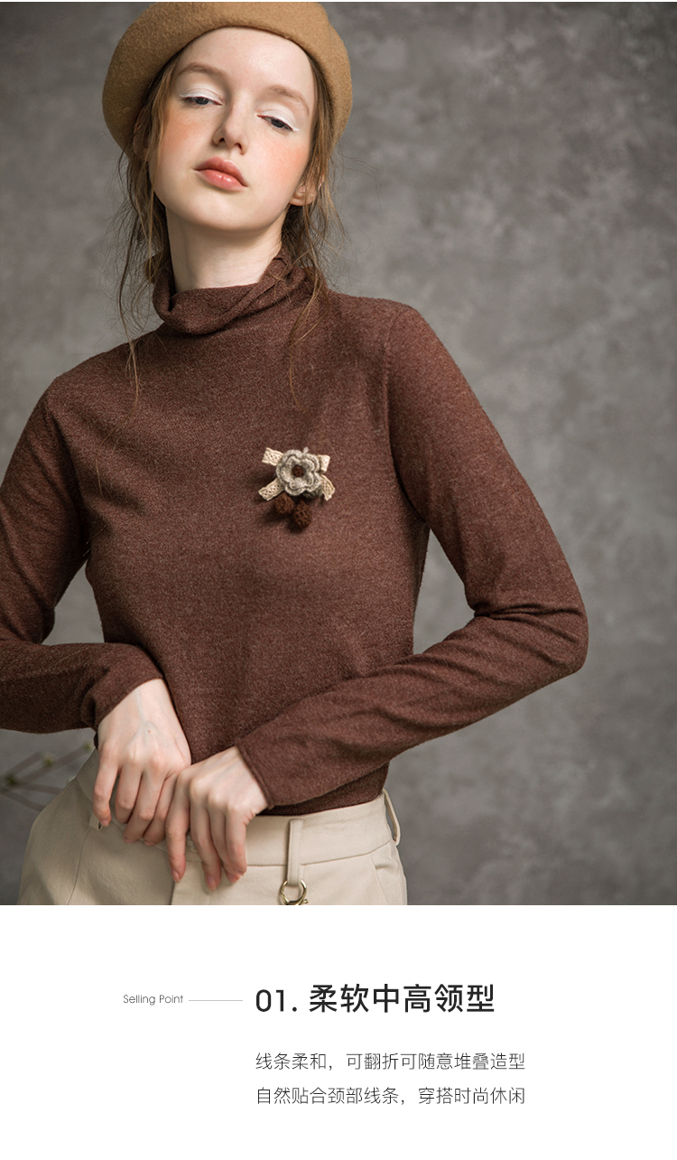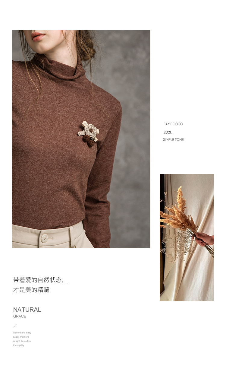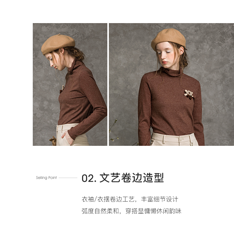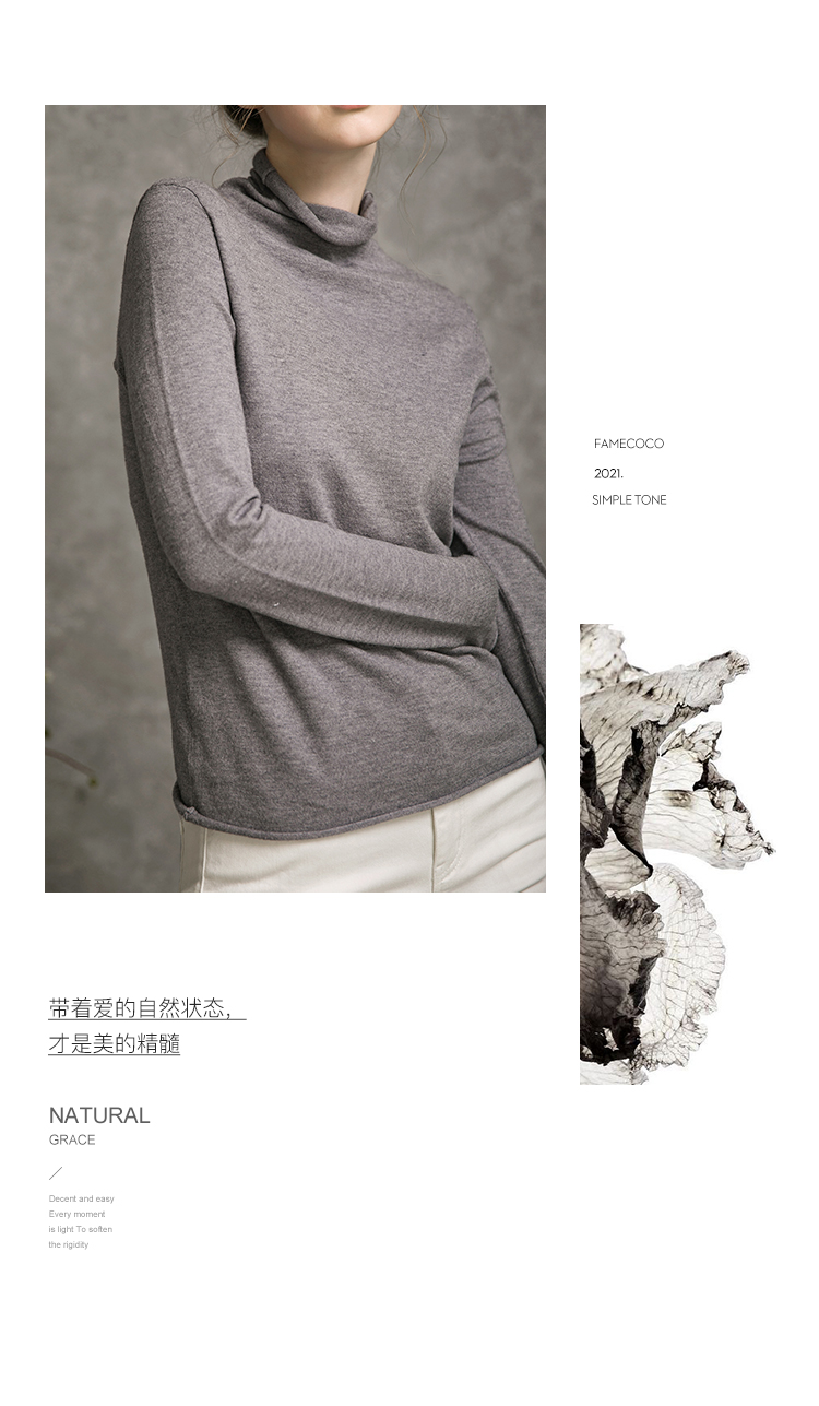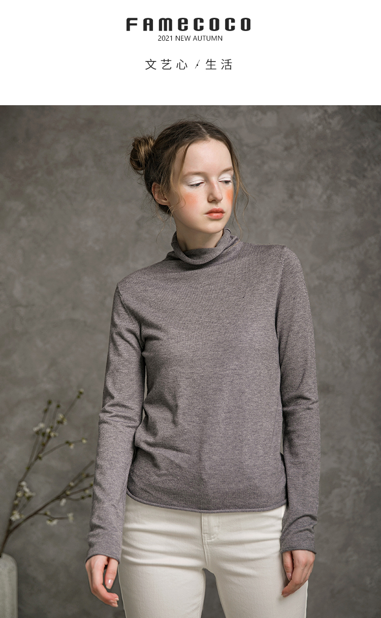 famecoco范可儿高领针织衫女秋百搭纯色卷边打底衫F216DC009