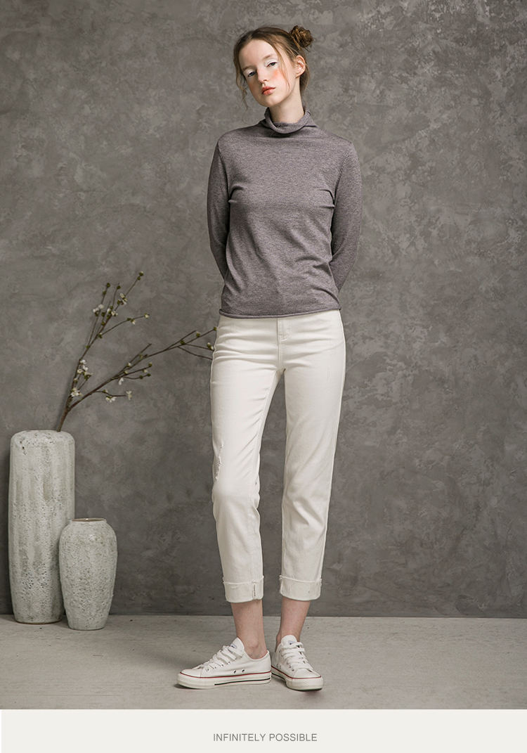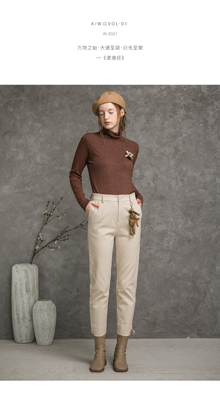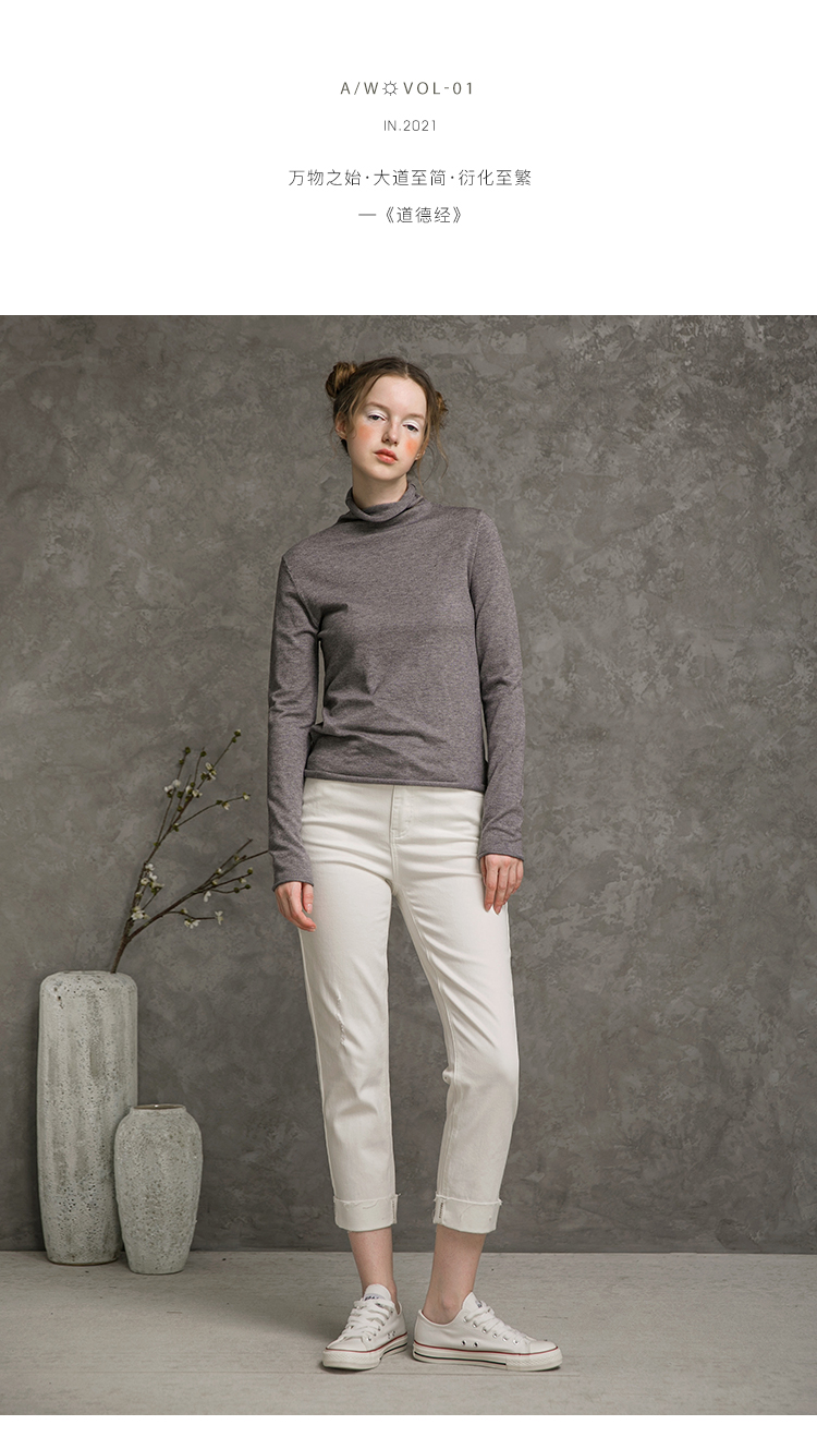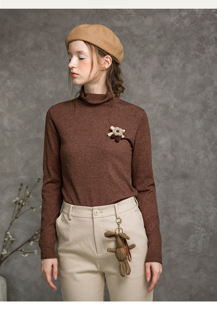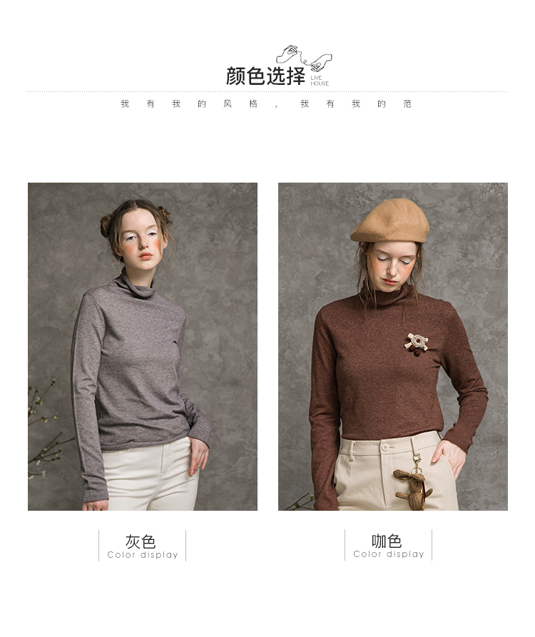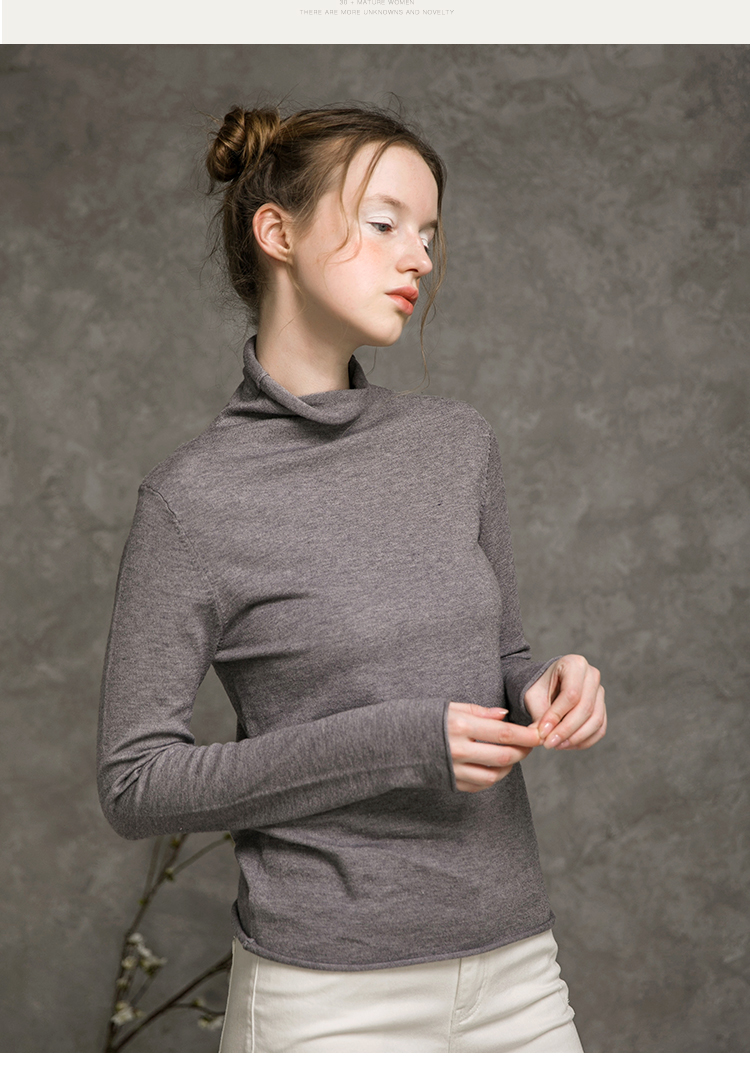famecoco范可儿高领针织衫女秋百搭纯色卷边打底衫F216DC009