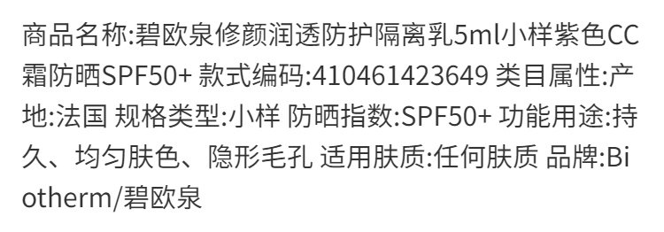 【爆款超低价预售 急单慎拍】碧欧泉修颜润透防护隔离乳5ml 柔光紫色 亮肤妆前CC霜 专柜小样