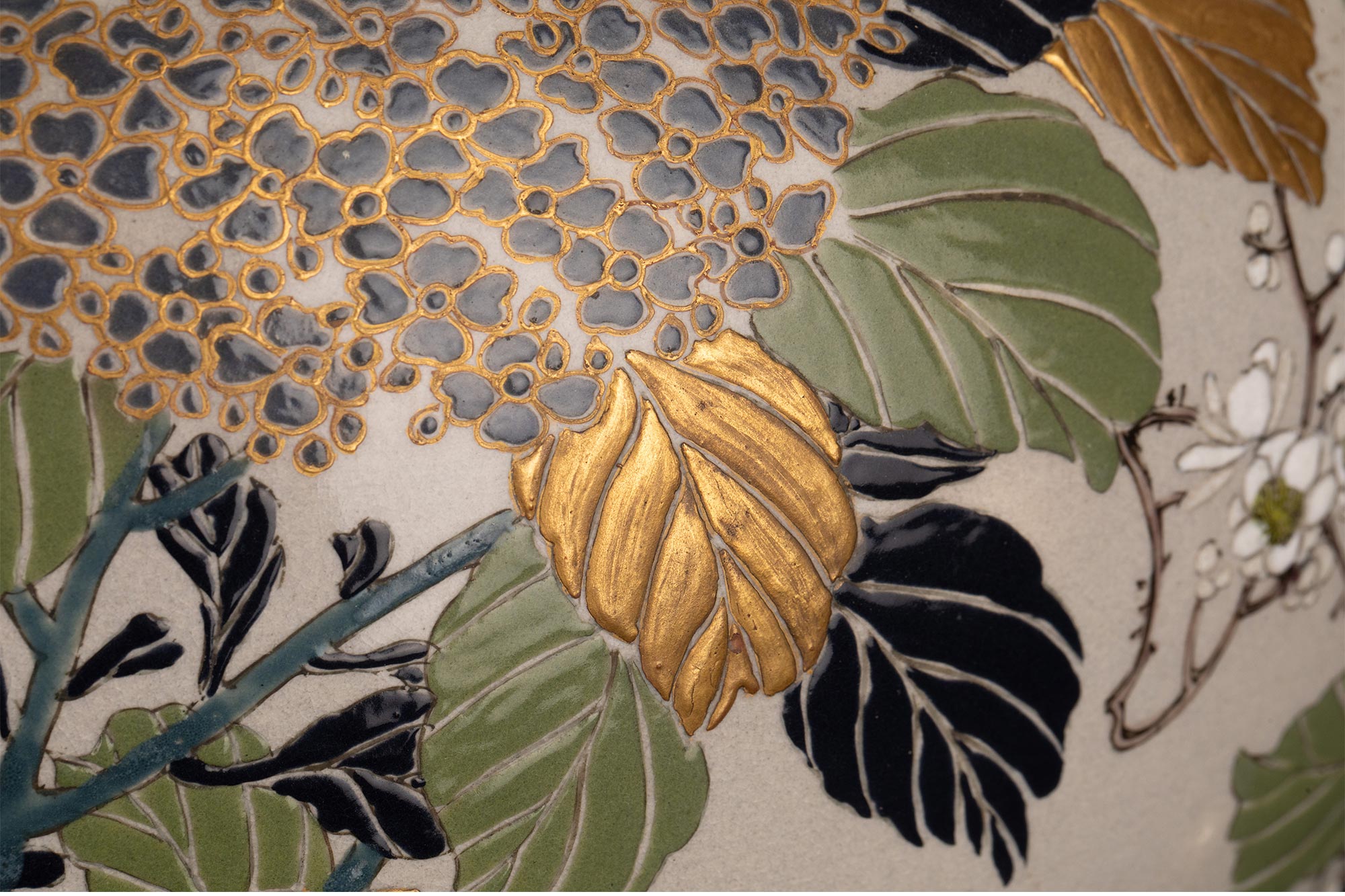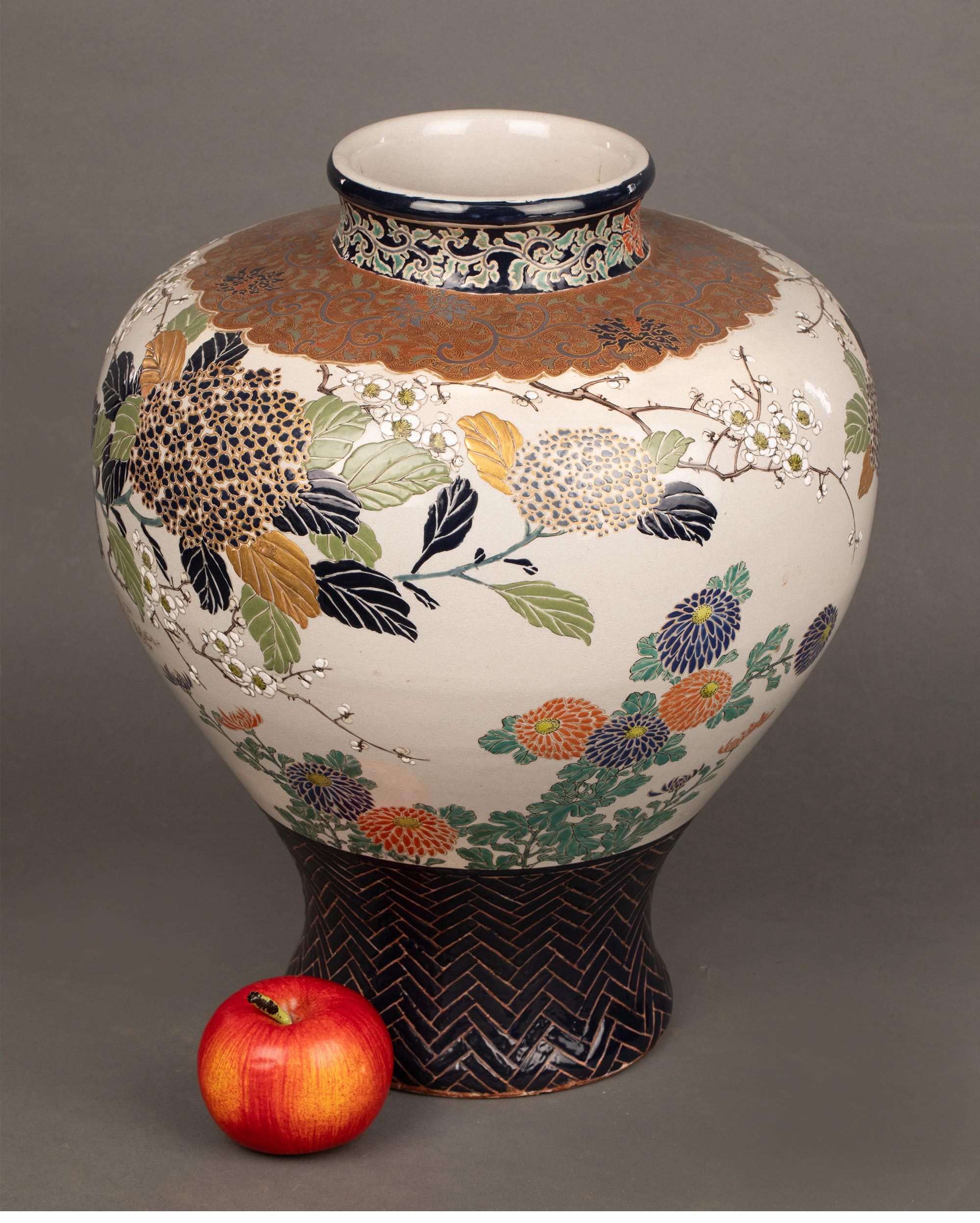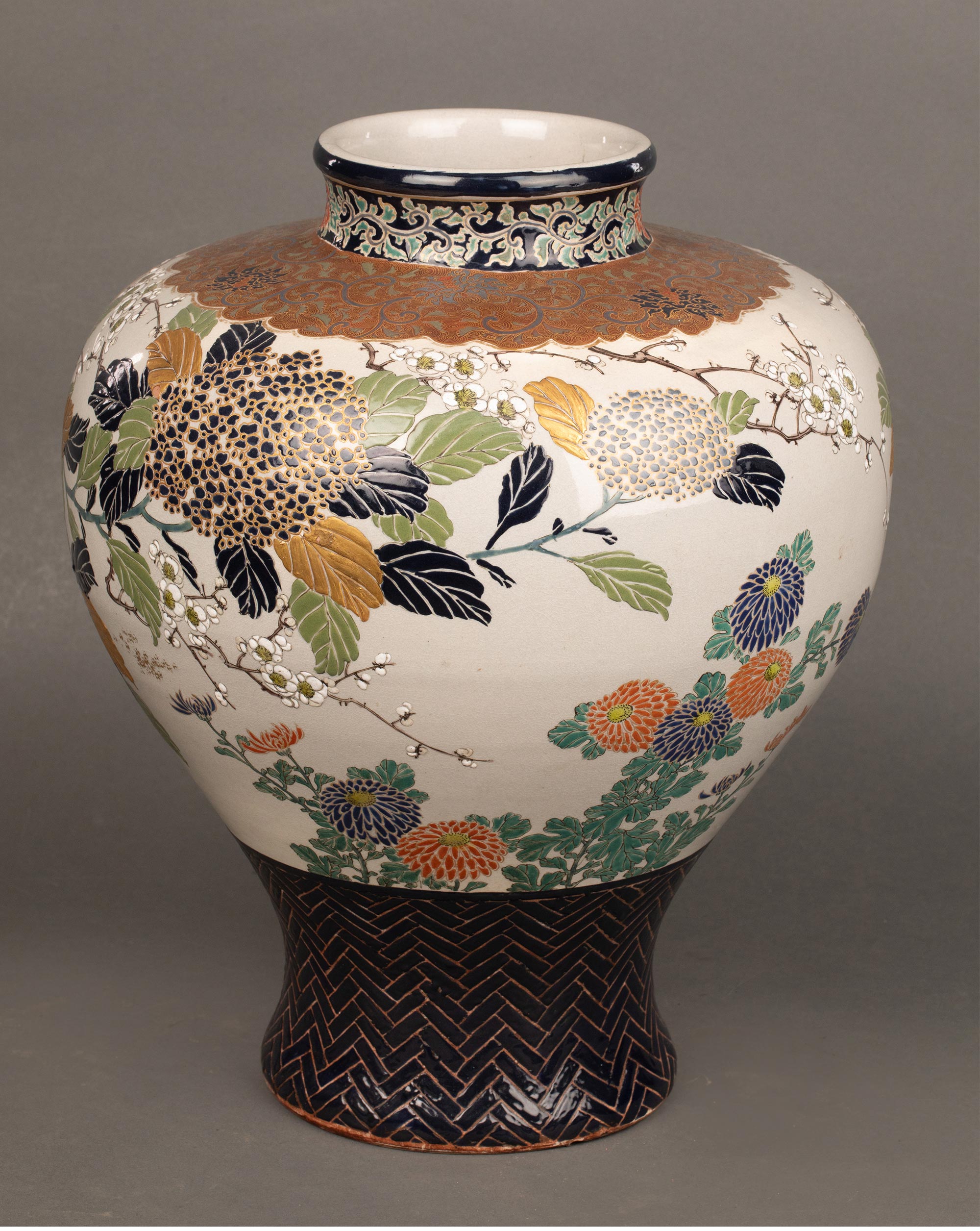 1900年代日本明治时期出品岛津家丸十字家徽款祥瑞花叶纹描金彩绘萨摩烧花瓶