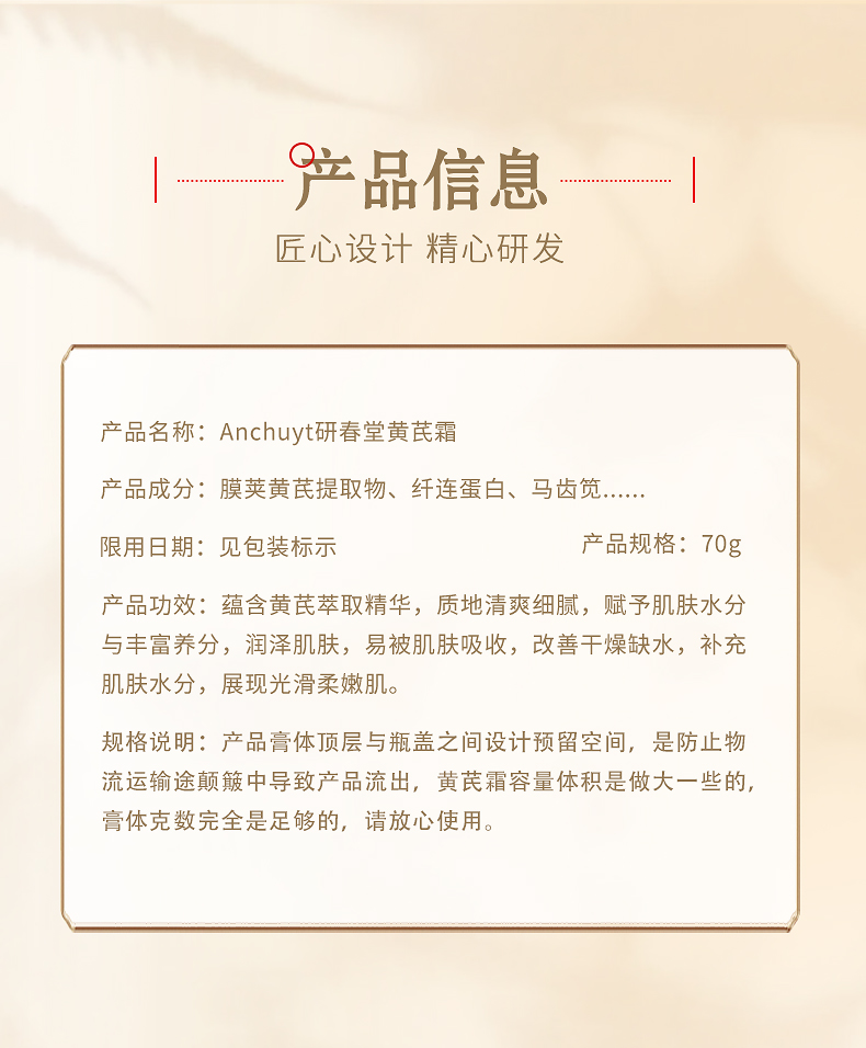 【买2送1 】研春堂黄芪霜3瓶装 补水保湿 舒缓滋润 细腻肌肤 养护水润肌肤