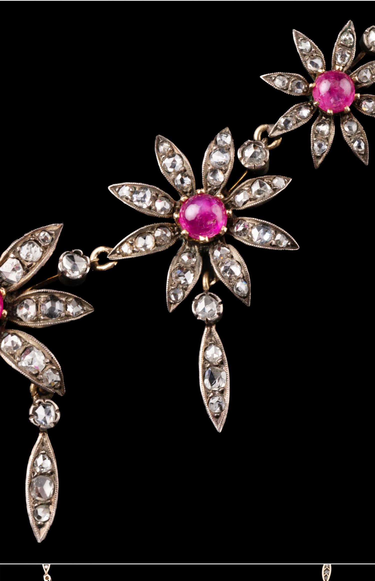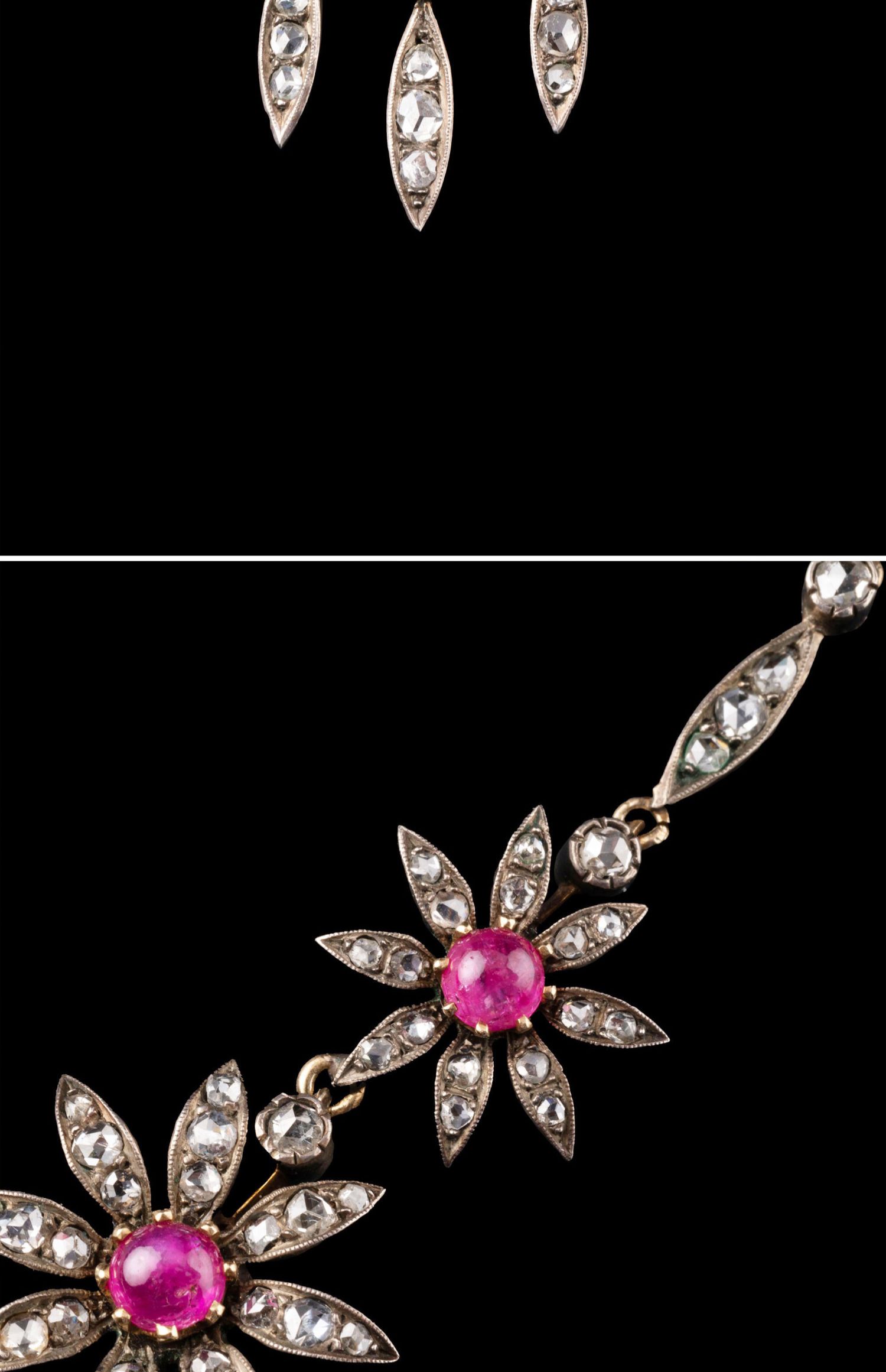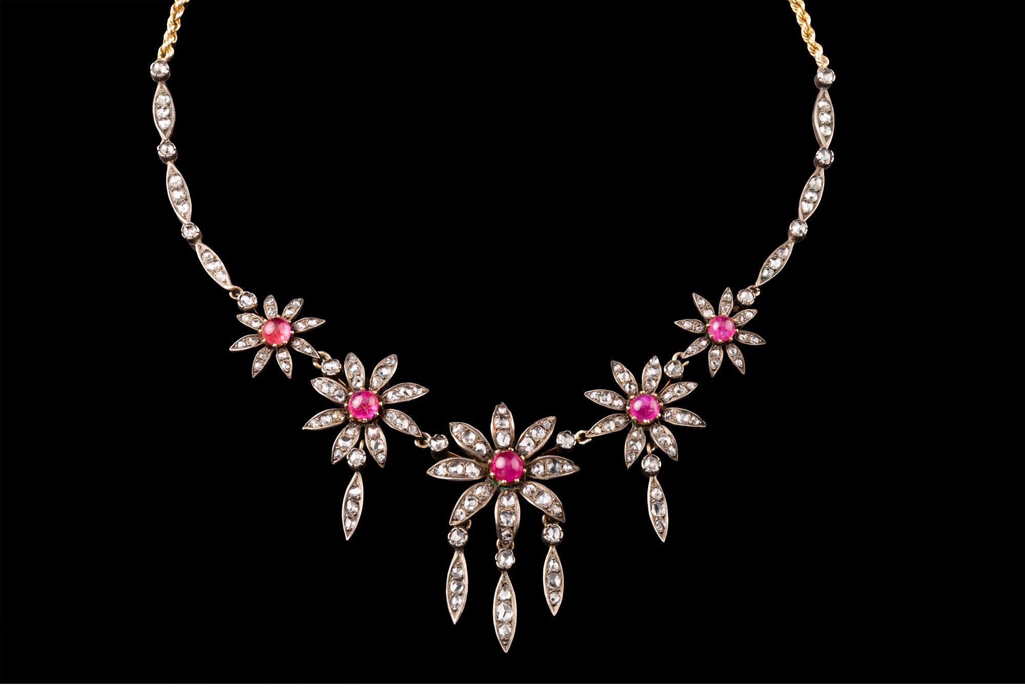 独角鹿西洋古董首饰欧洲vintage珠宝纯银及18K金镶钻石红宝石项链