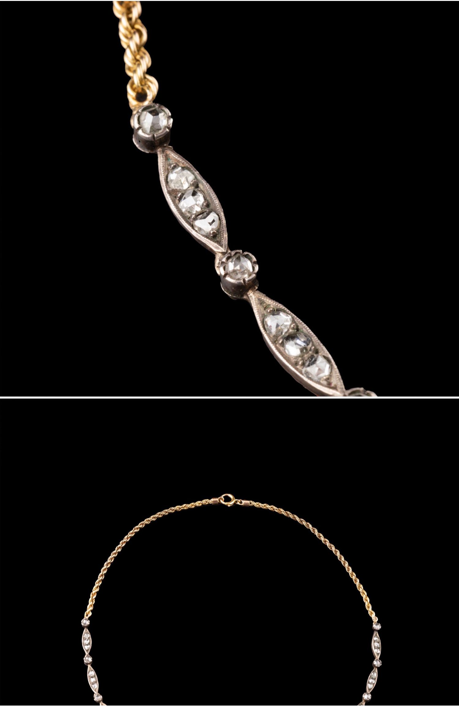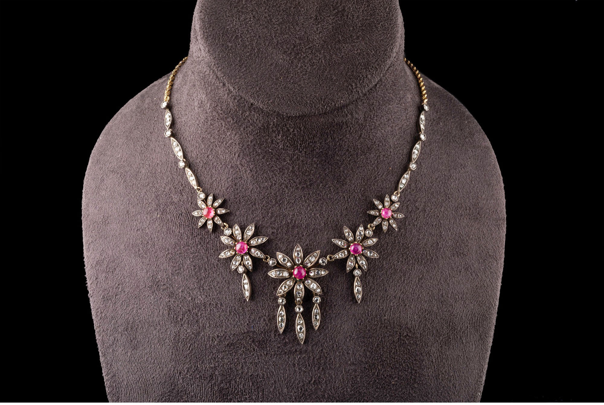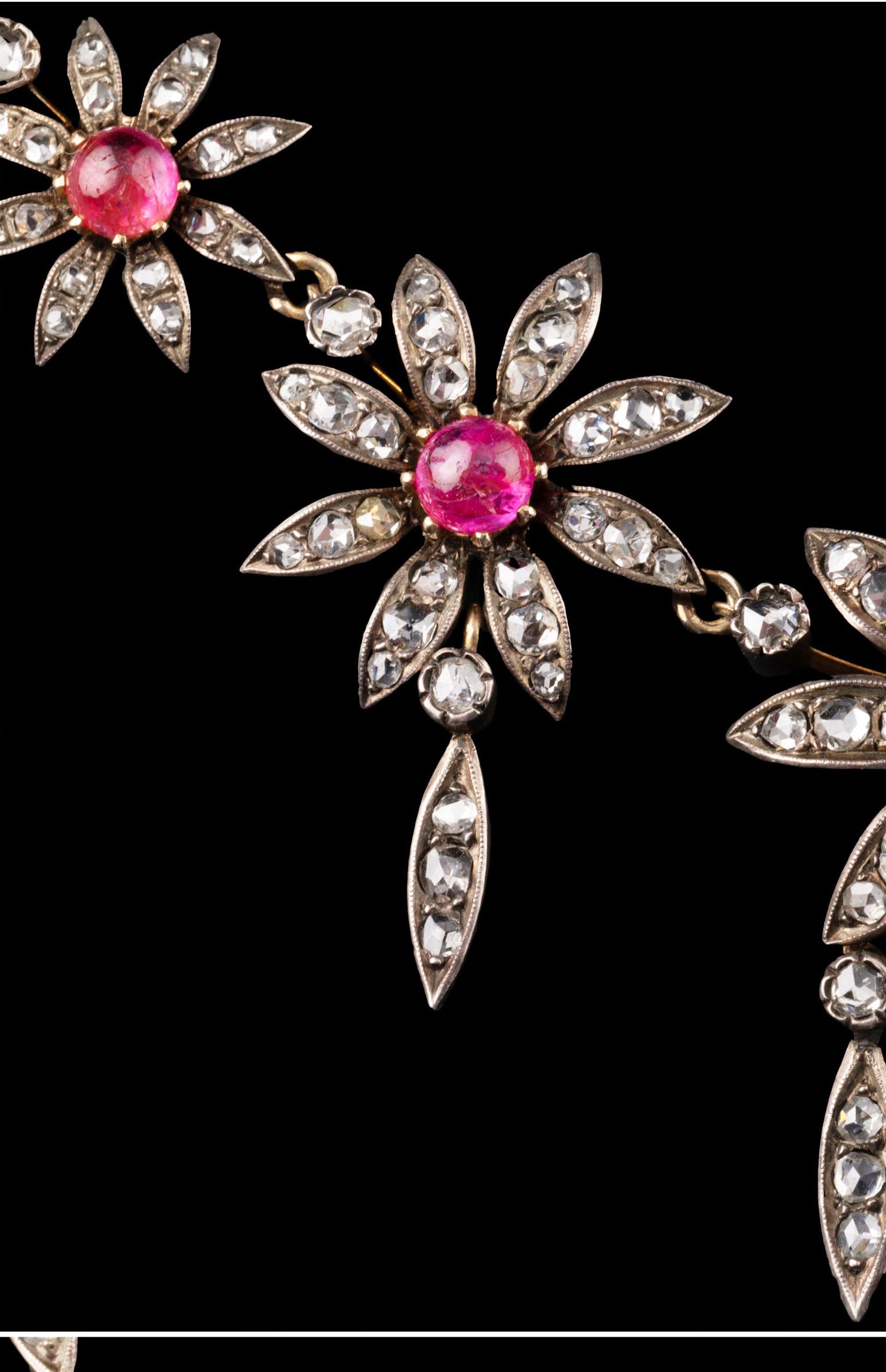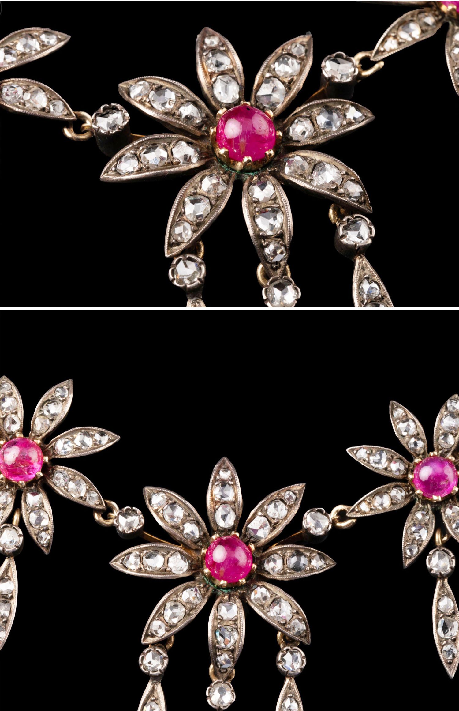 独角鹿西洋古董首饰欧洲vintage珠宝纯银及18K金镶钻石红宝石项链