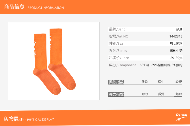 多威袜子男女新款吸汗透气运动长筒袜1442315/1442372