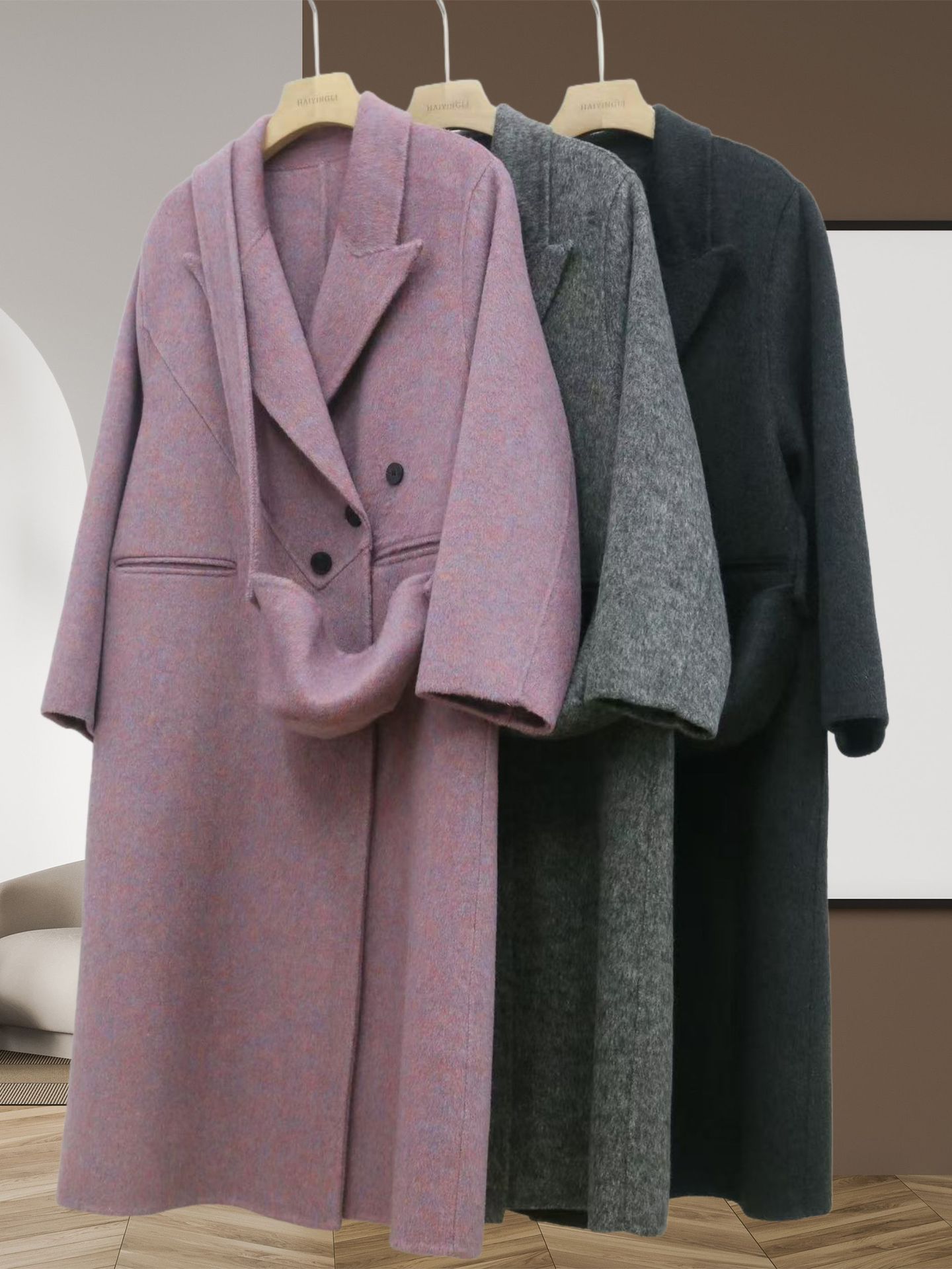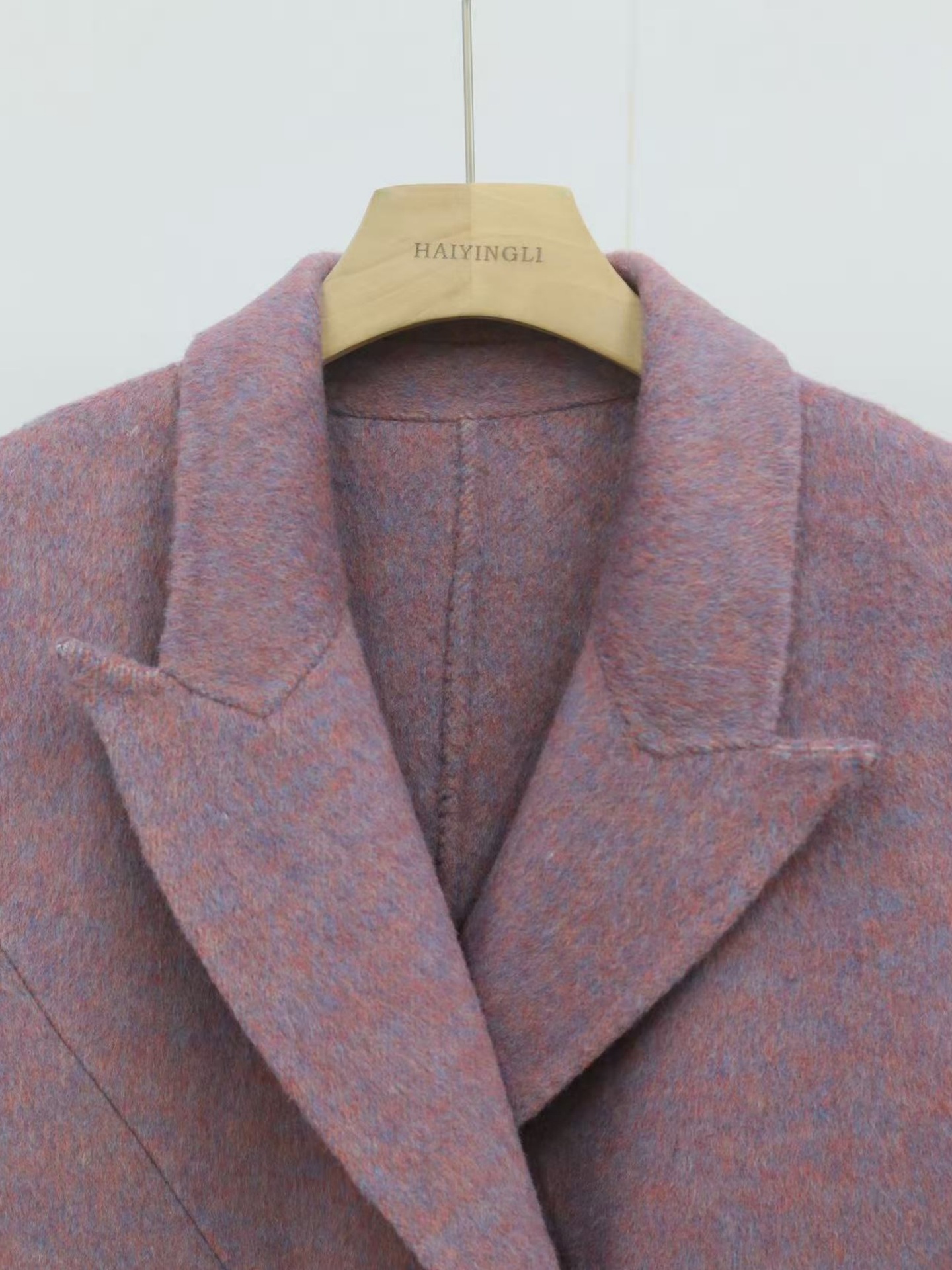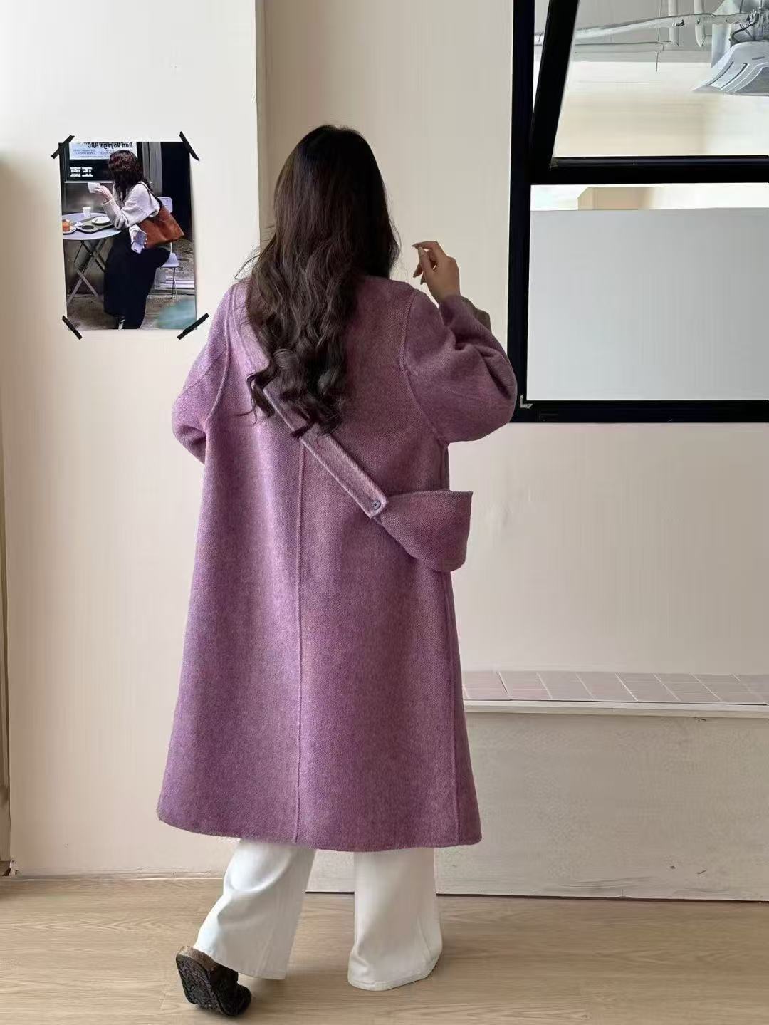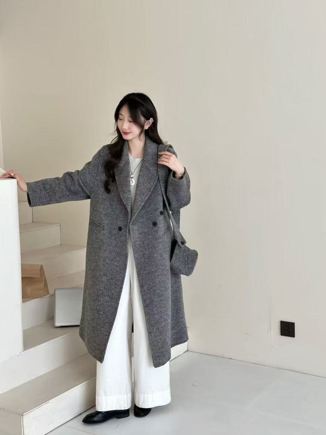 【YW】无忧购长款双面100%羊毛大衣西装领渔夫帽两件毛呢气质外套(截单后3-5天发货)