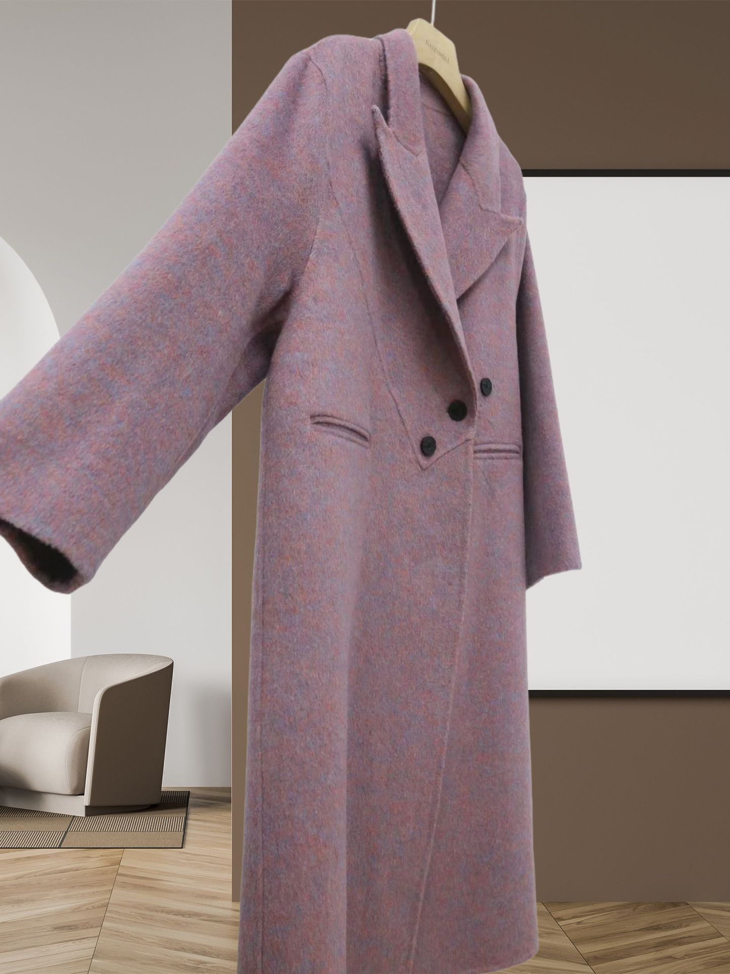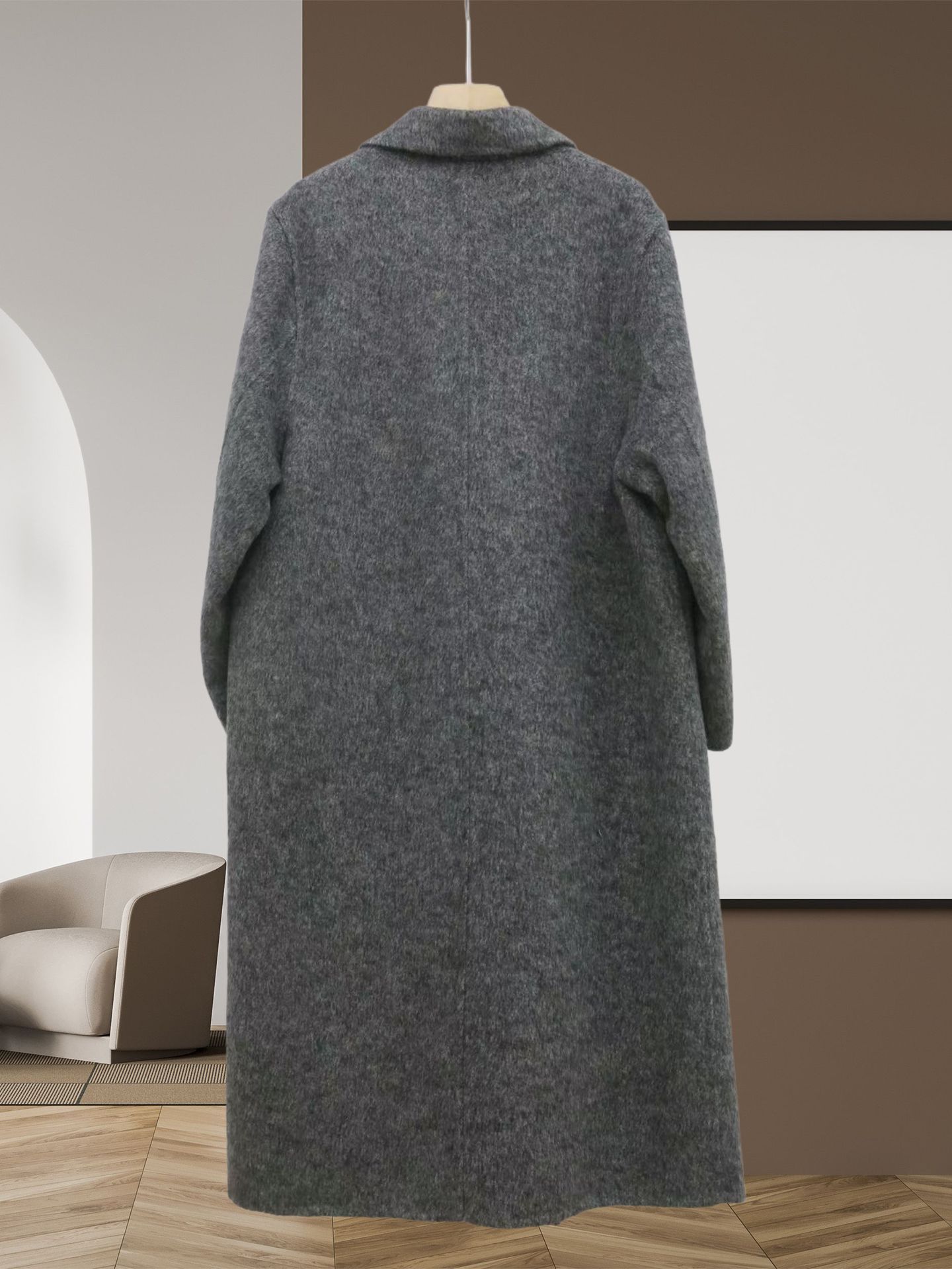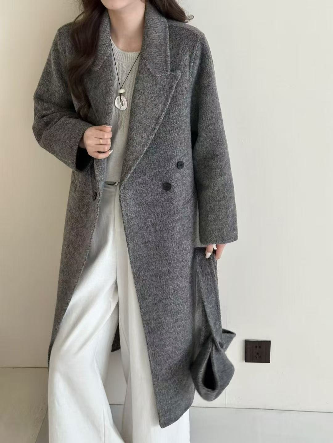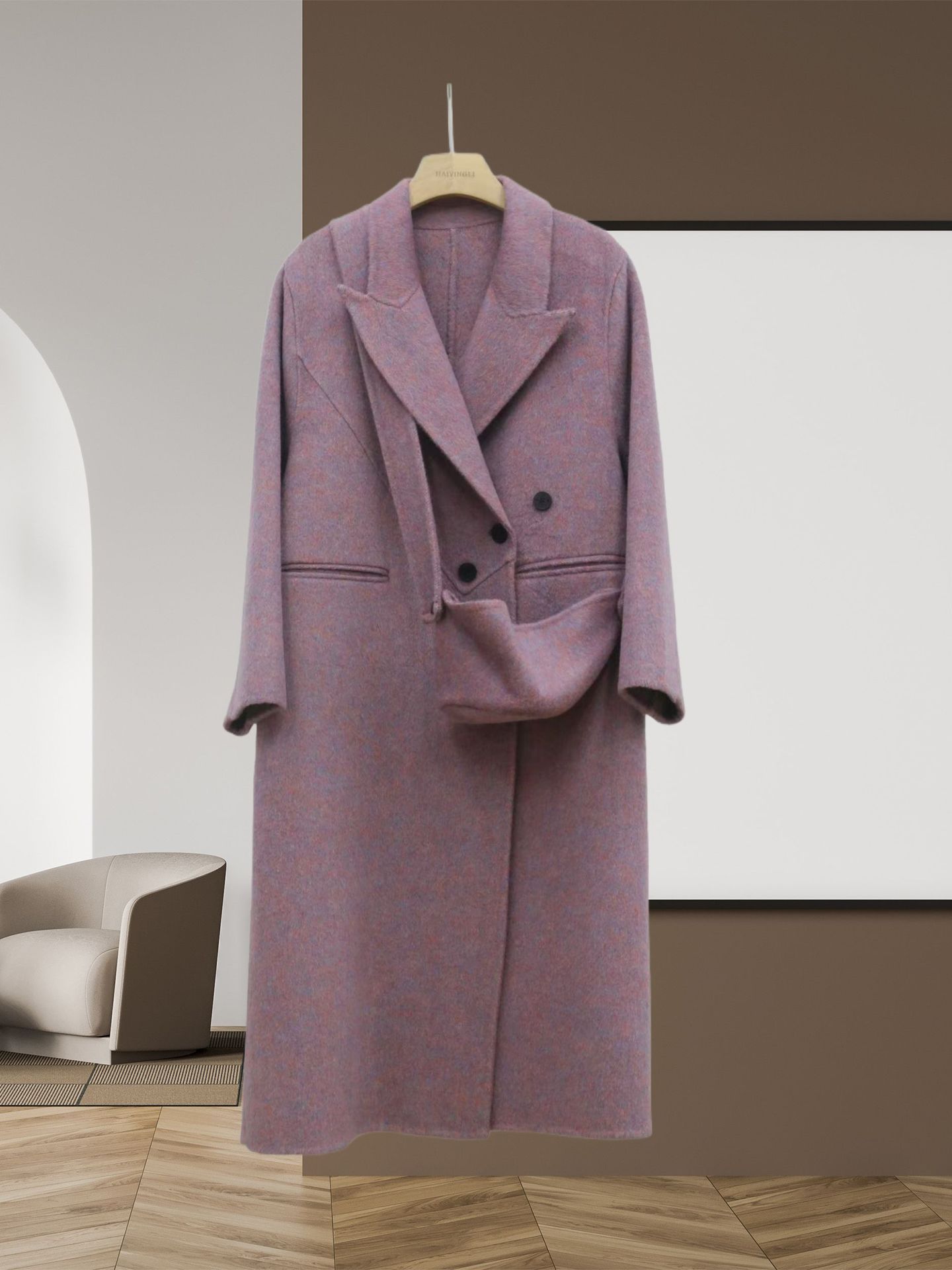 【YW】无忧购长款双面100%羊毛大衣西装领渔夫帽两件毛呢气质外套(截单后3-5天发货)