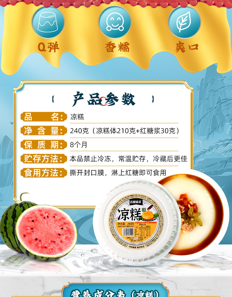 买2送3【送红糖+勺子!四川特产即食凉糕】开盖即食,香糯Q弹,清凉爽口,韧滑清香,老少皆宜的小吃代餐红糖凉糕