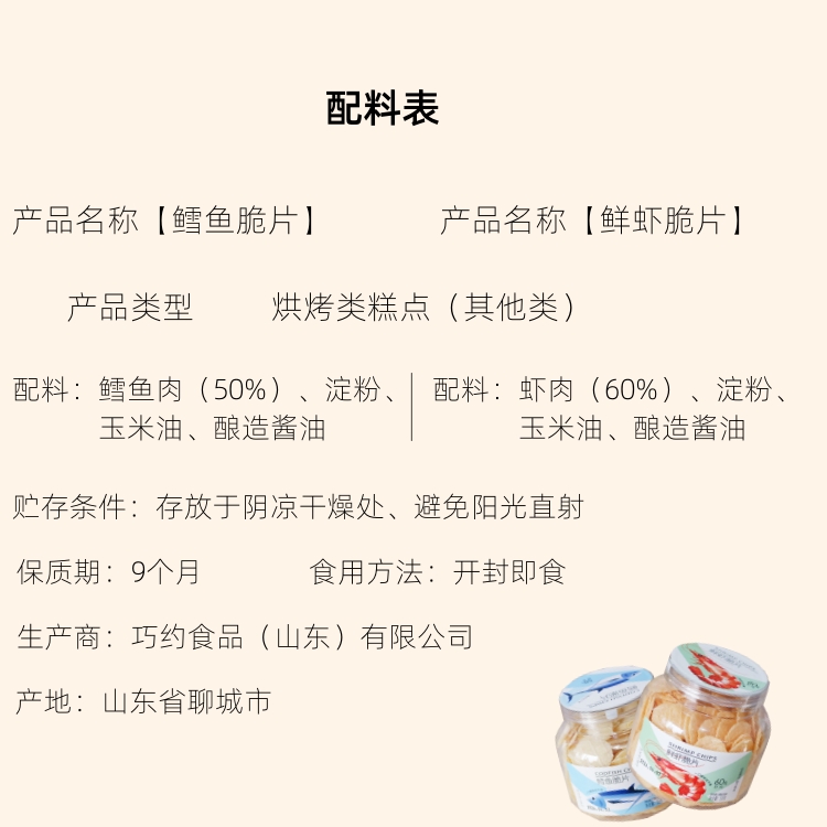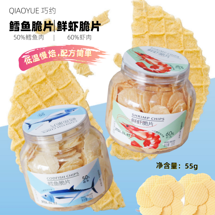 55g 巧约 鲜虾脆片(60%虾肉)/鳕鱼脆片(50%鳕鱼) 无添加 零食虾片