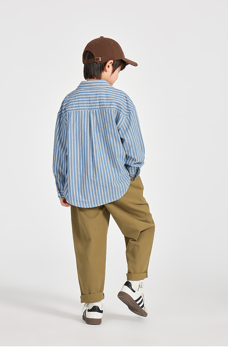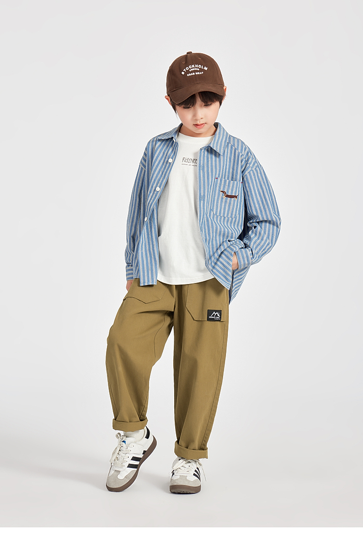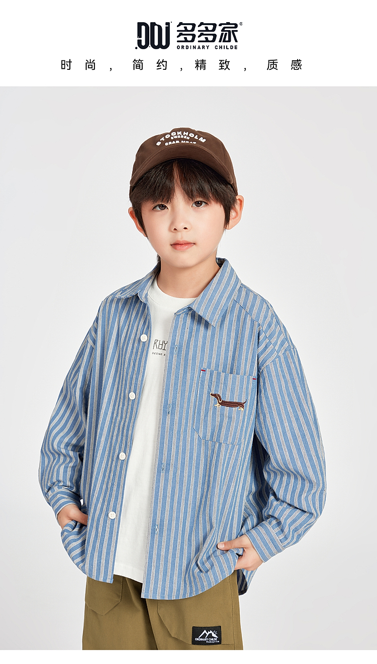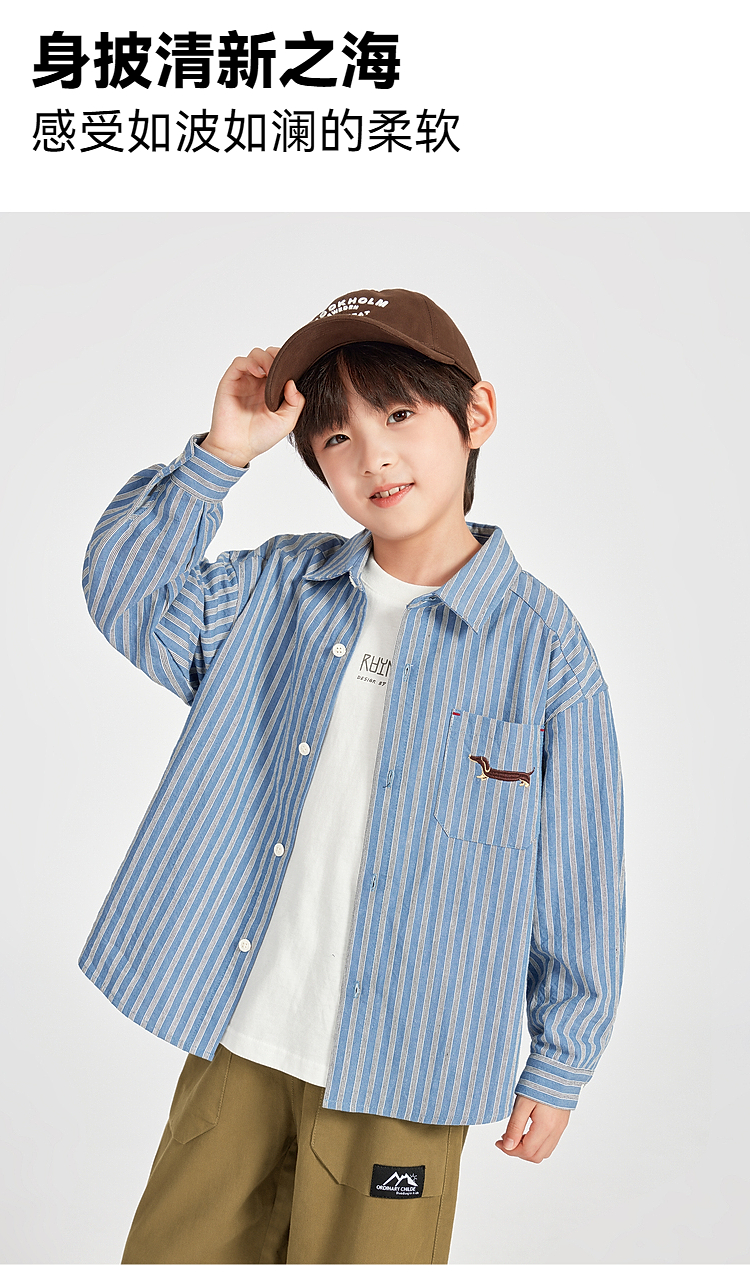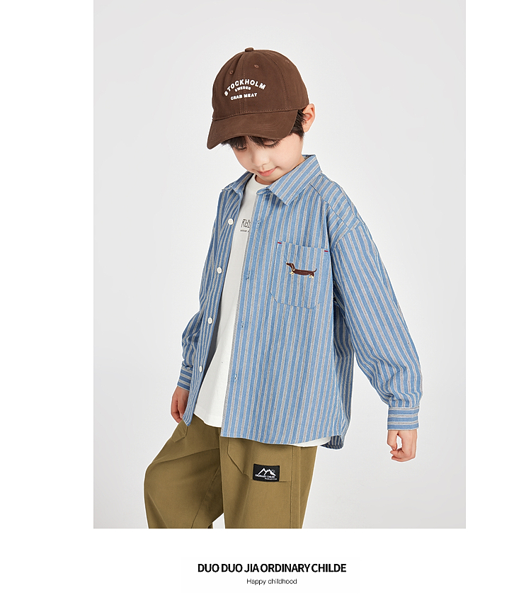【团购价69.9】多多家男童衬衫2025春秋款新款儿童中大童条纹刺绣外套长袖衬衣潮10260