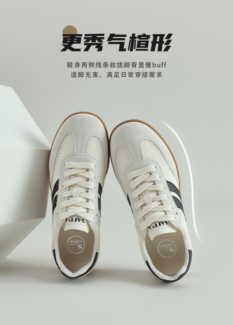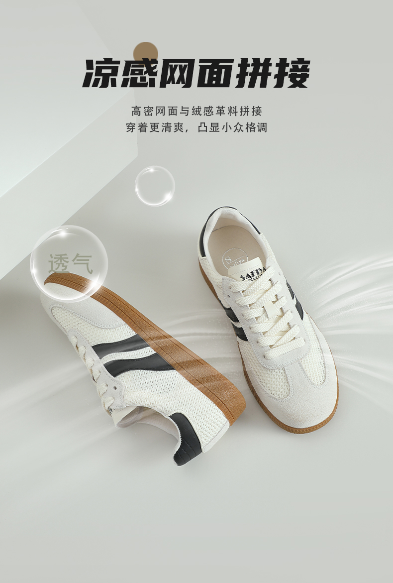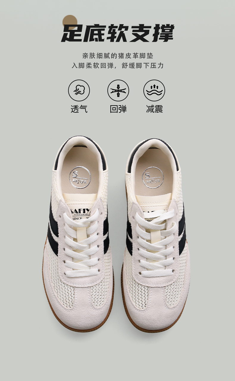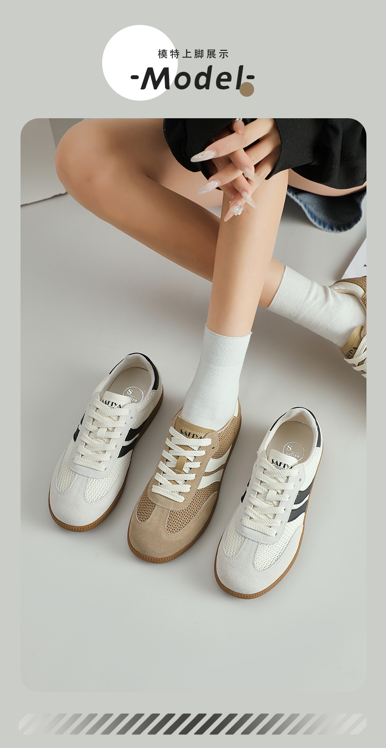 预售7天|Safiya/索菲娅2025复古学院风网面透气拼色休闲系带德训鞋SFD1112055