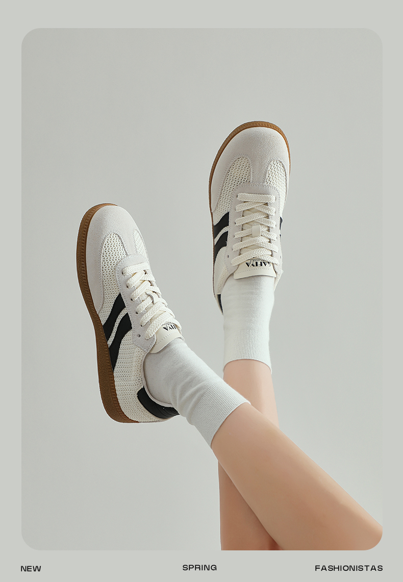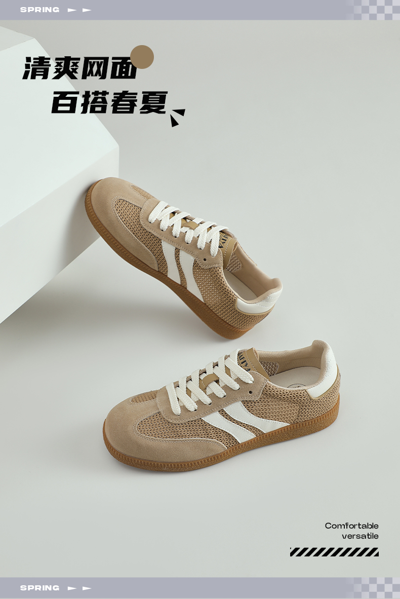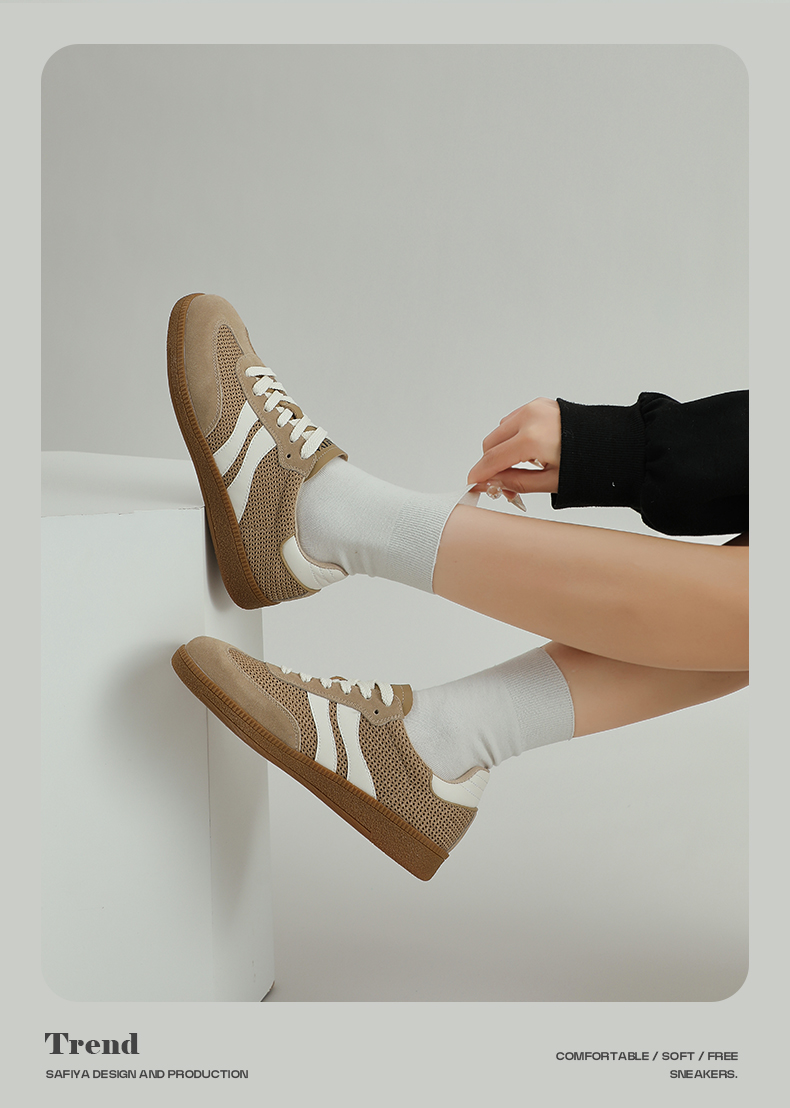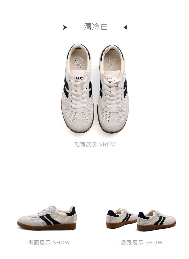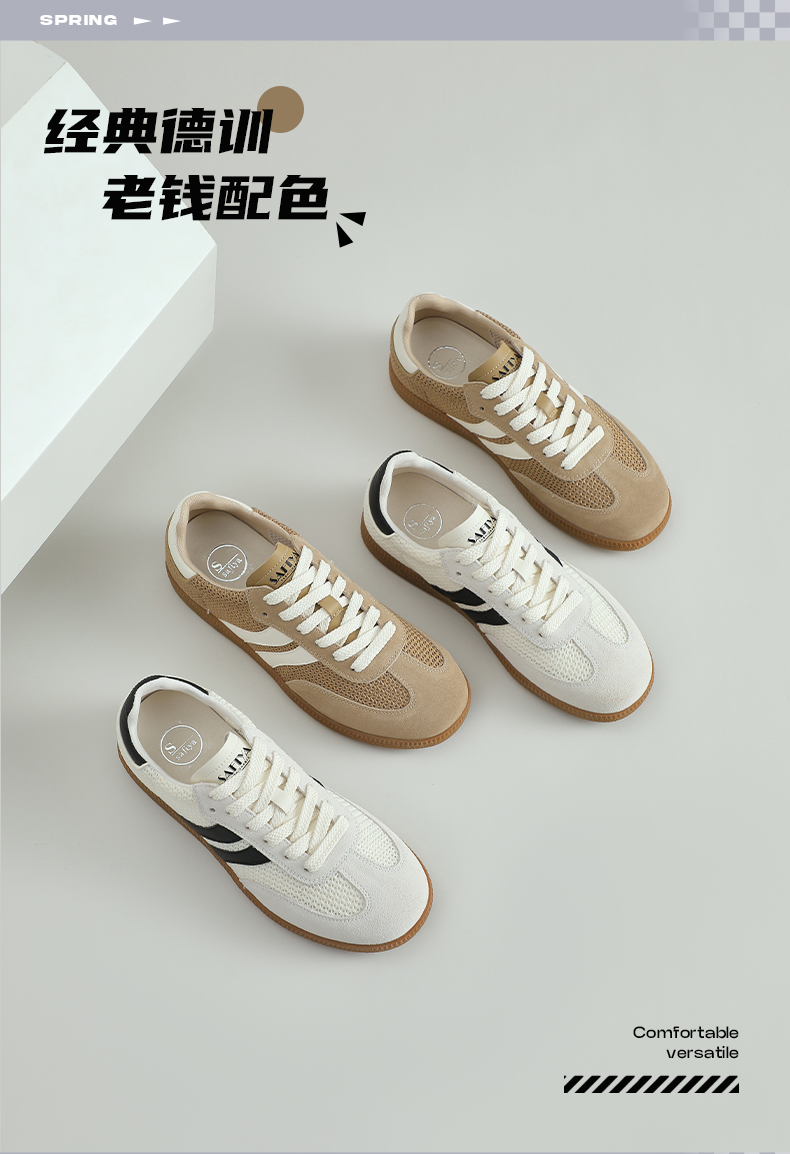 预售7天|Safiya/索菲娅2025复古学院风网面透气拼色休闲系带德训鞋SFD1112055