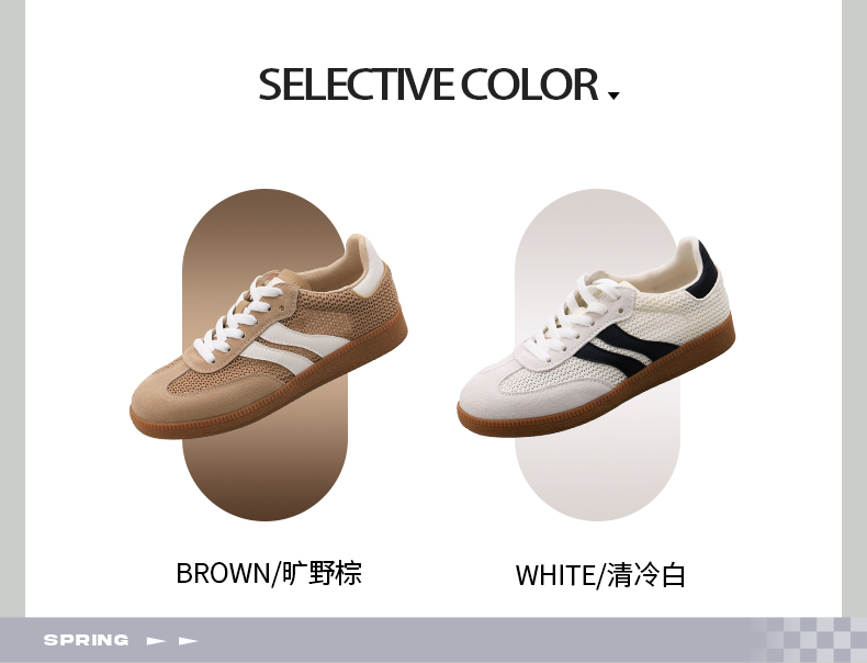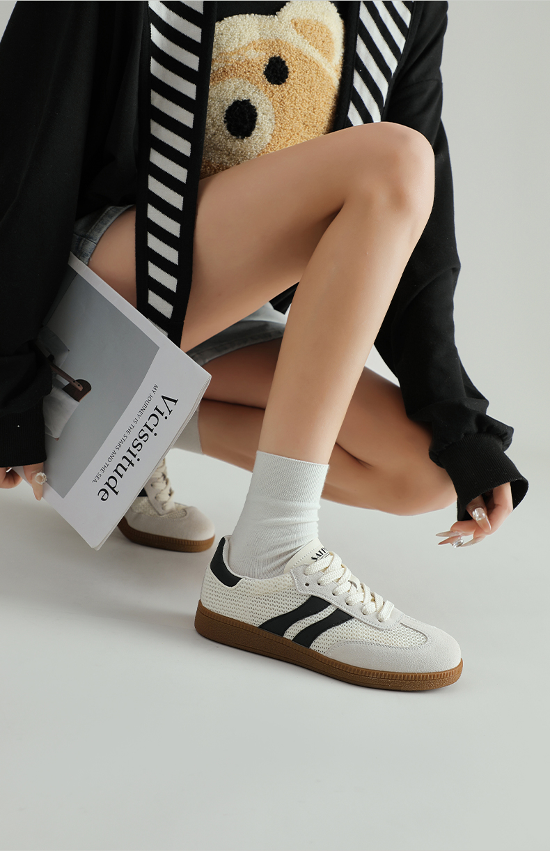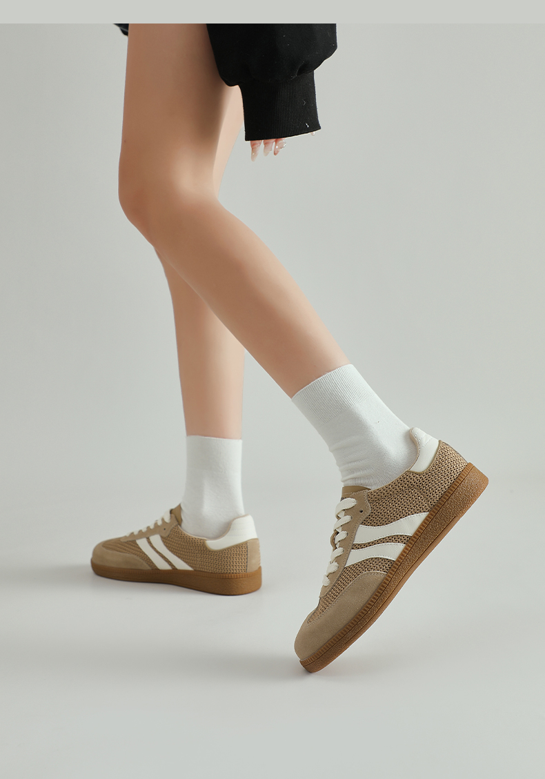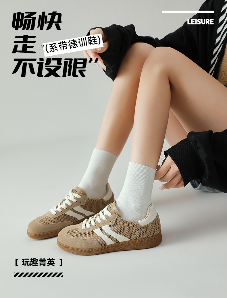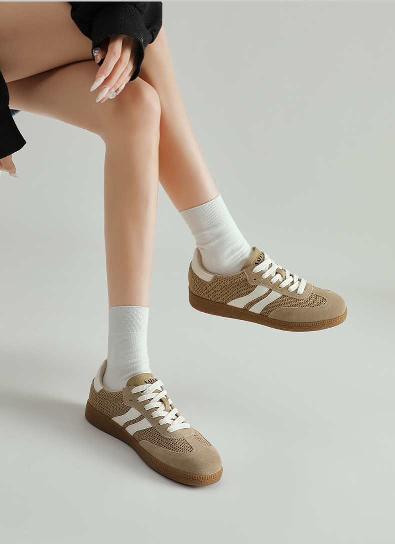 预售7天|Safiya/索菲娅2025复古学院风网面透气拼色休闲系带德训鞋SFD1112055