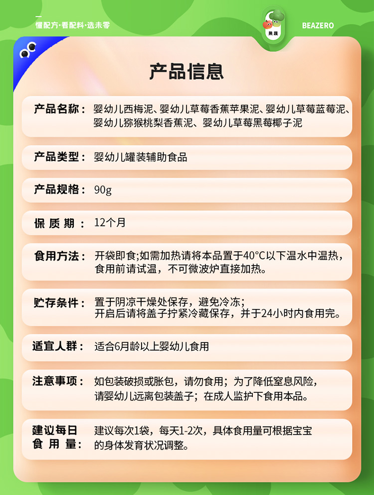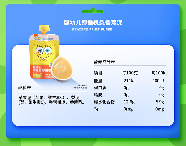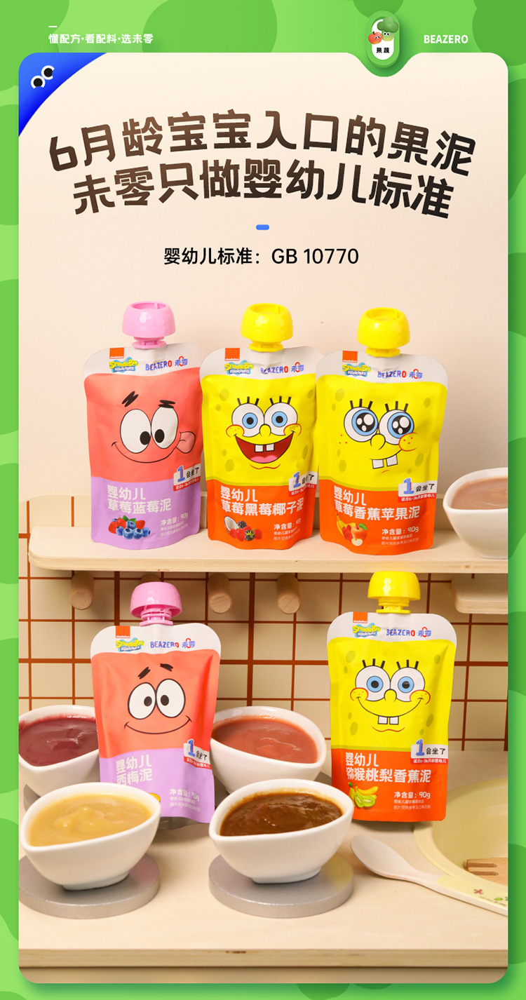 【未零】婴幼儿婴标果泥90g起海绵宝宝水果果泥