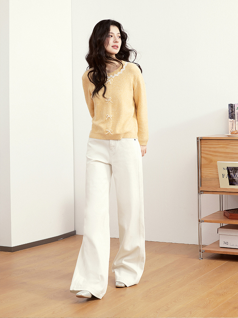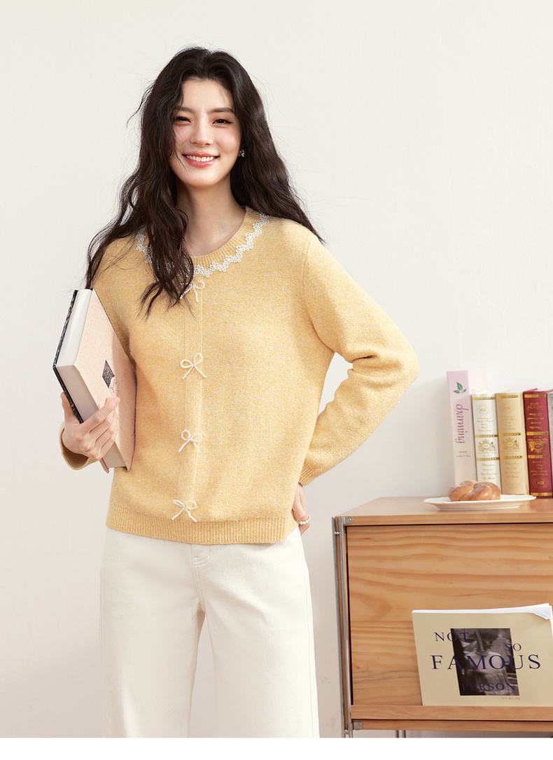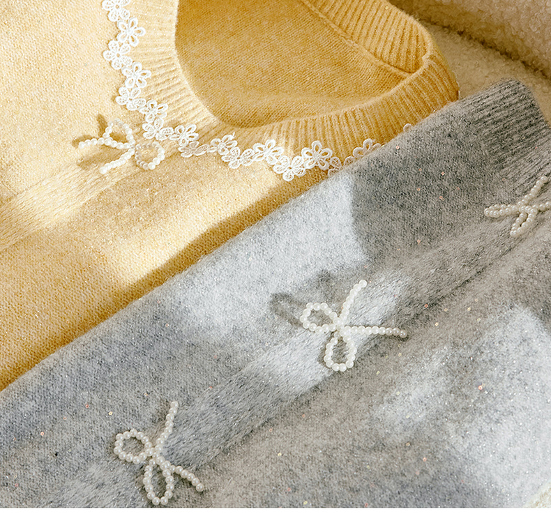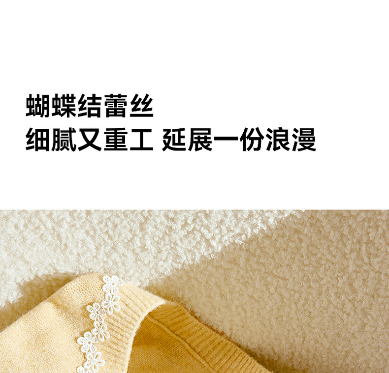 【严选】【蝶恋花】诗凡黎毛针织衫蝴蝶结蕾丝浪漫千金女25春夏新毛衣圆领7G1130391