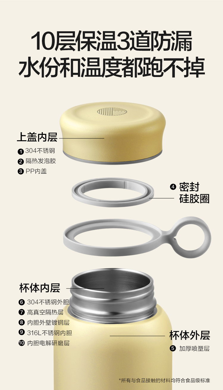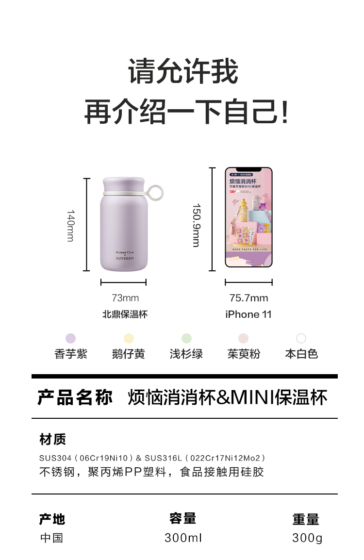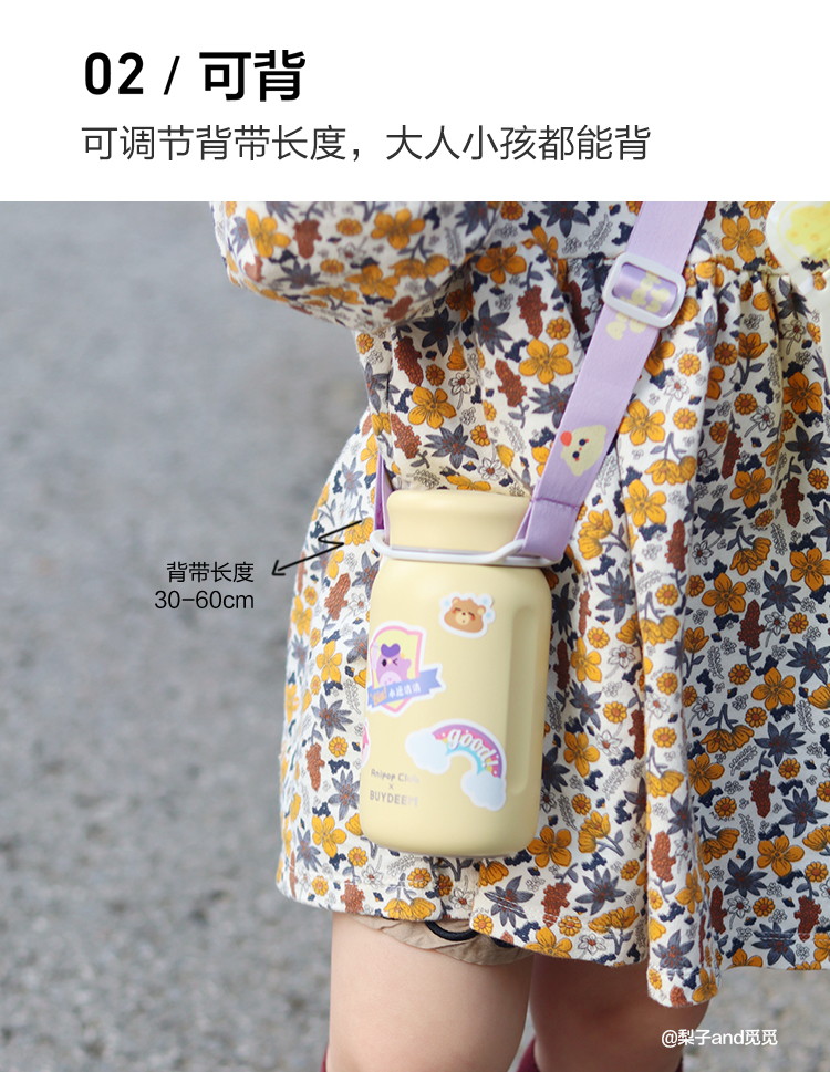 北鼎保温杯女男学生便携316不锈钢儿童迷你可爱小仙女斜跨水杯子