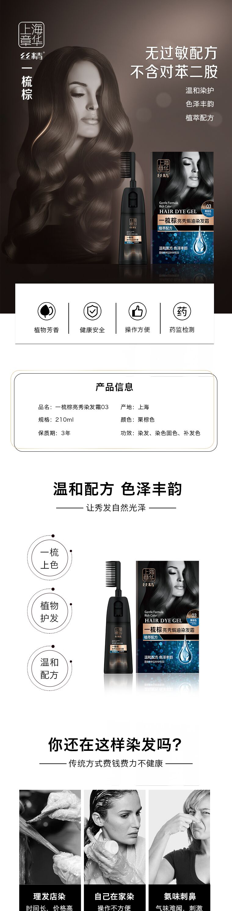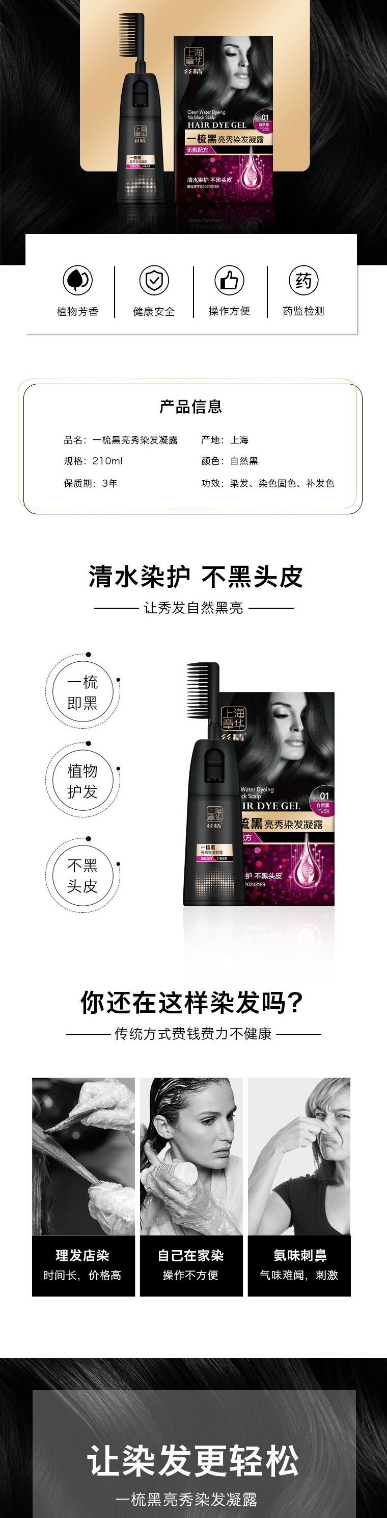 章华亮秀染发一梳黑(自然黑)(清水)-210ml