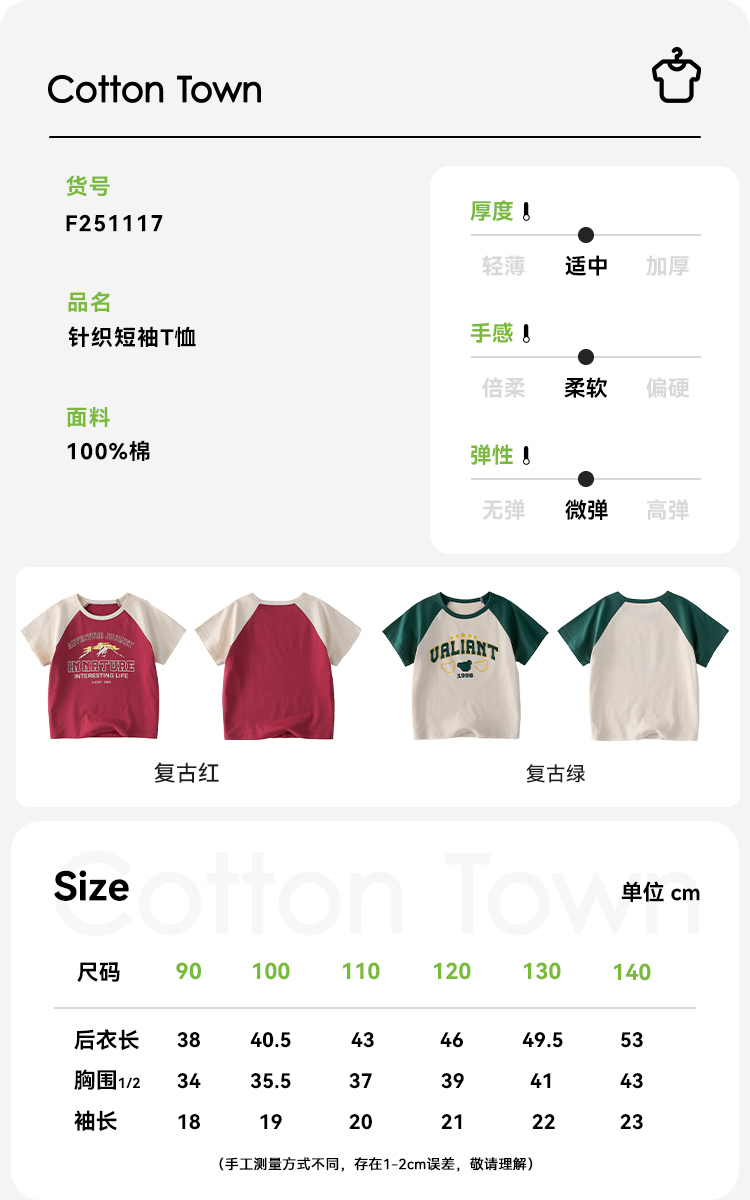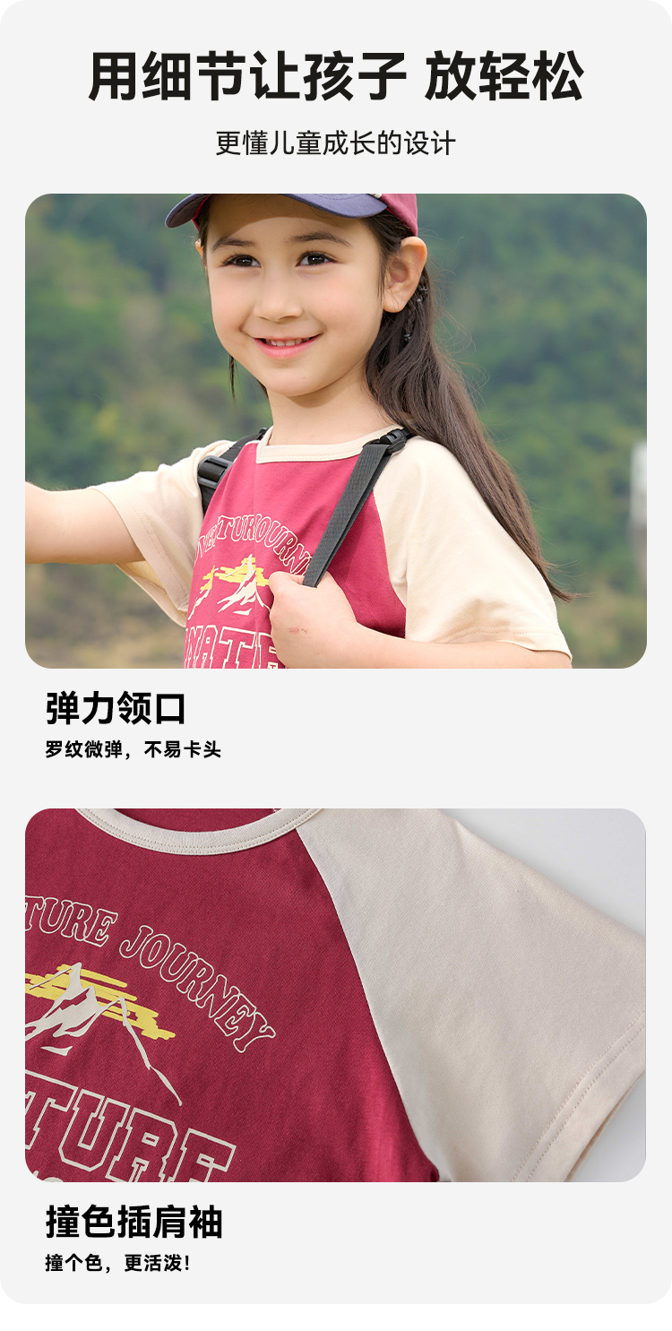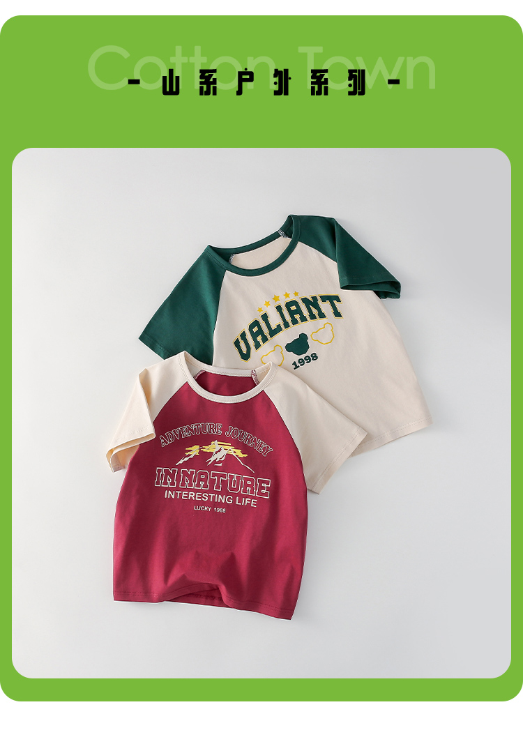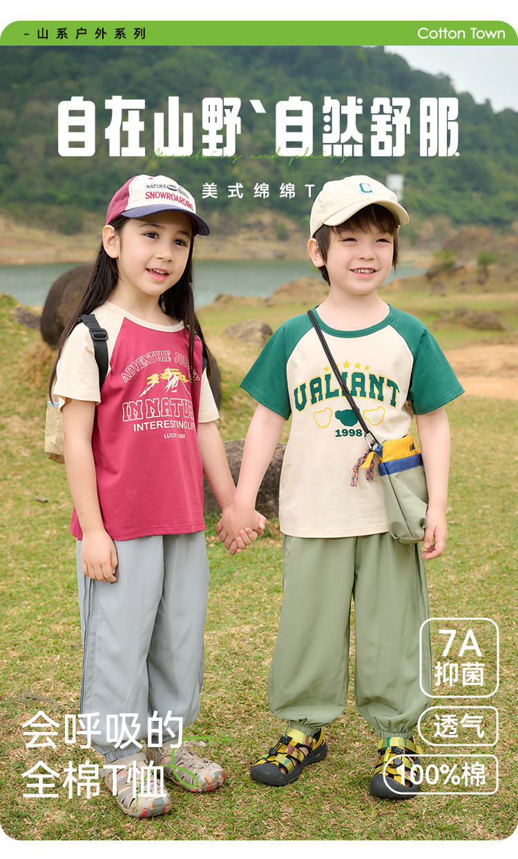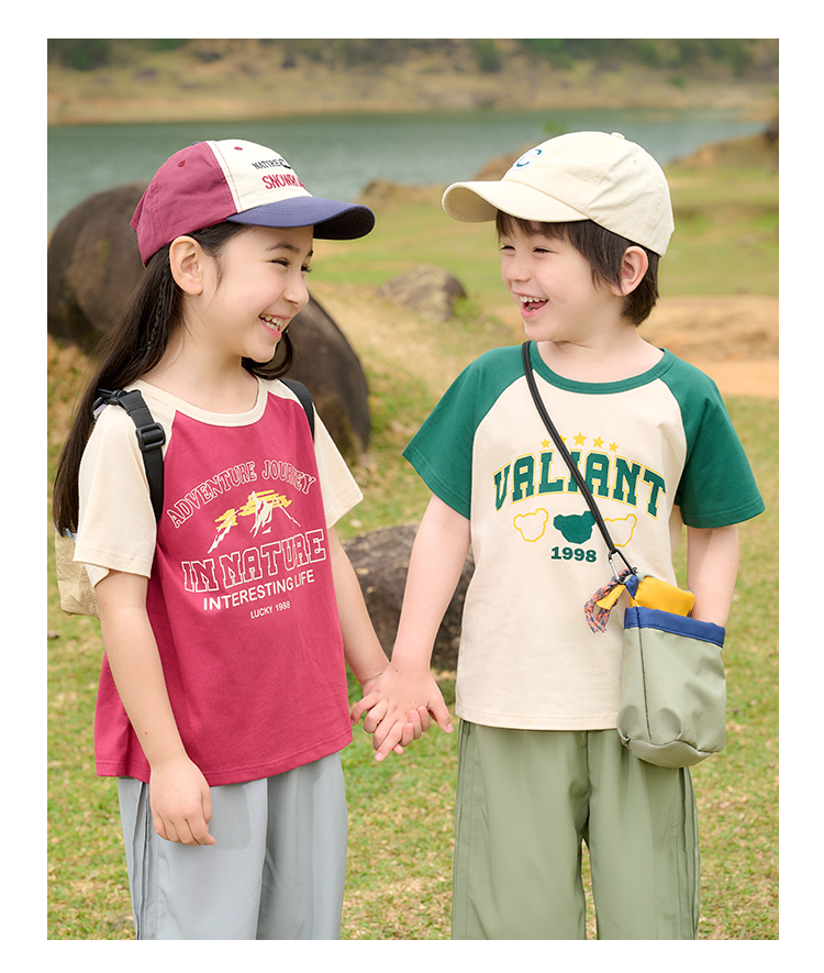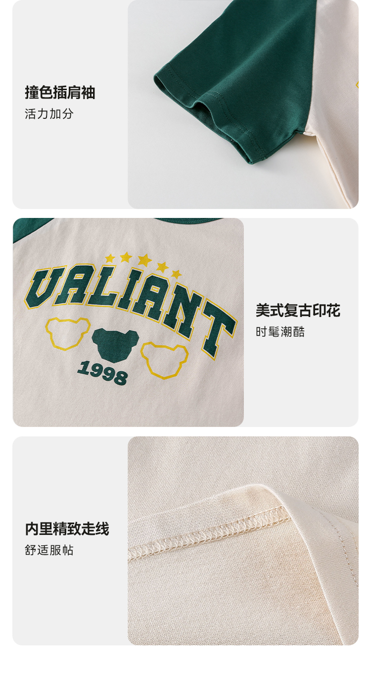 【7A抗菌纯棉】棉花堂2025年夏款美式纯棉复古短袖童装T恤F251117