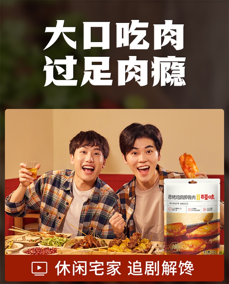 香烤鸡肩胛骨肉(蜂蜜味)60g 分段慢烤,肉质紧致耐嚼;加入蜂蜜,香甜回味