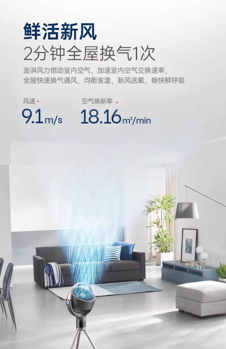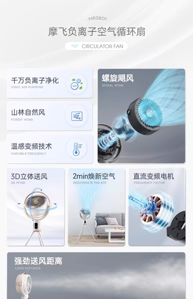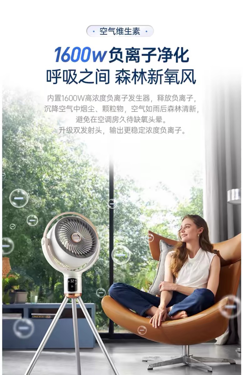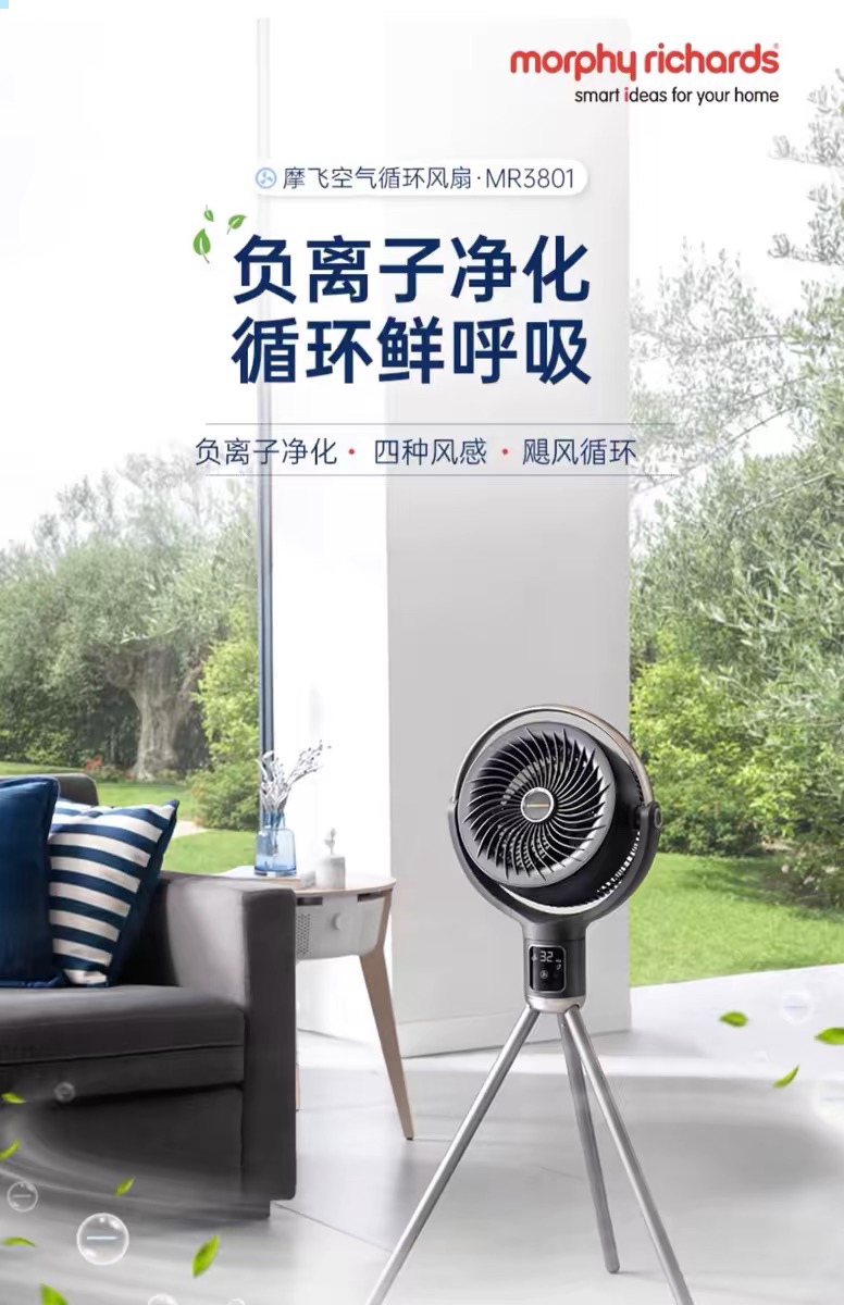 摩飞负离子空气循环扇家用节能摇头立式大风力非静音落地扇电风扇