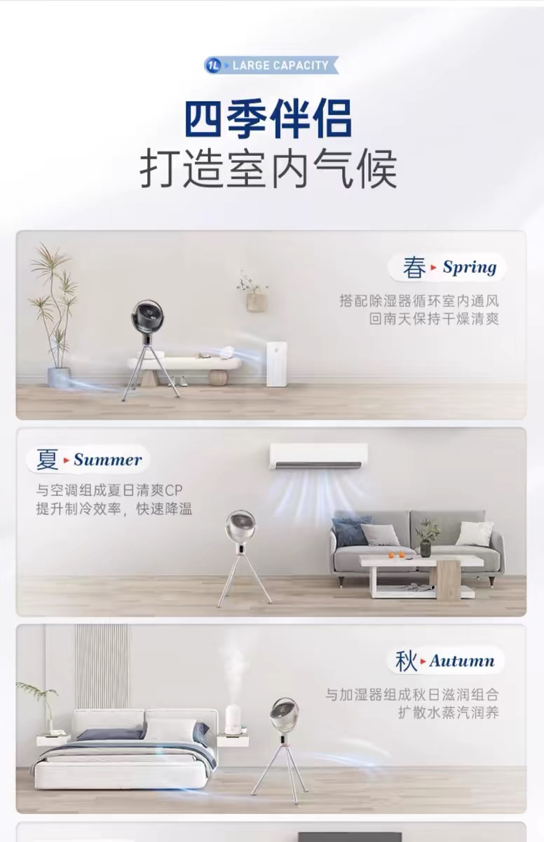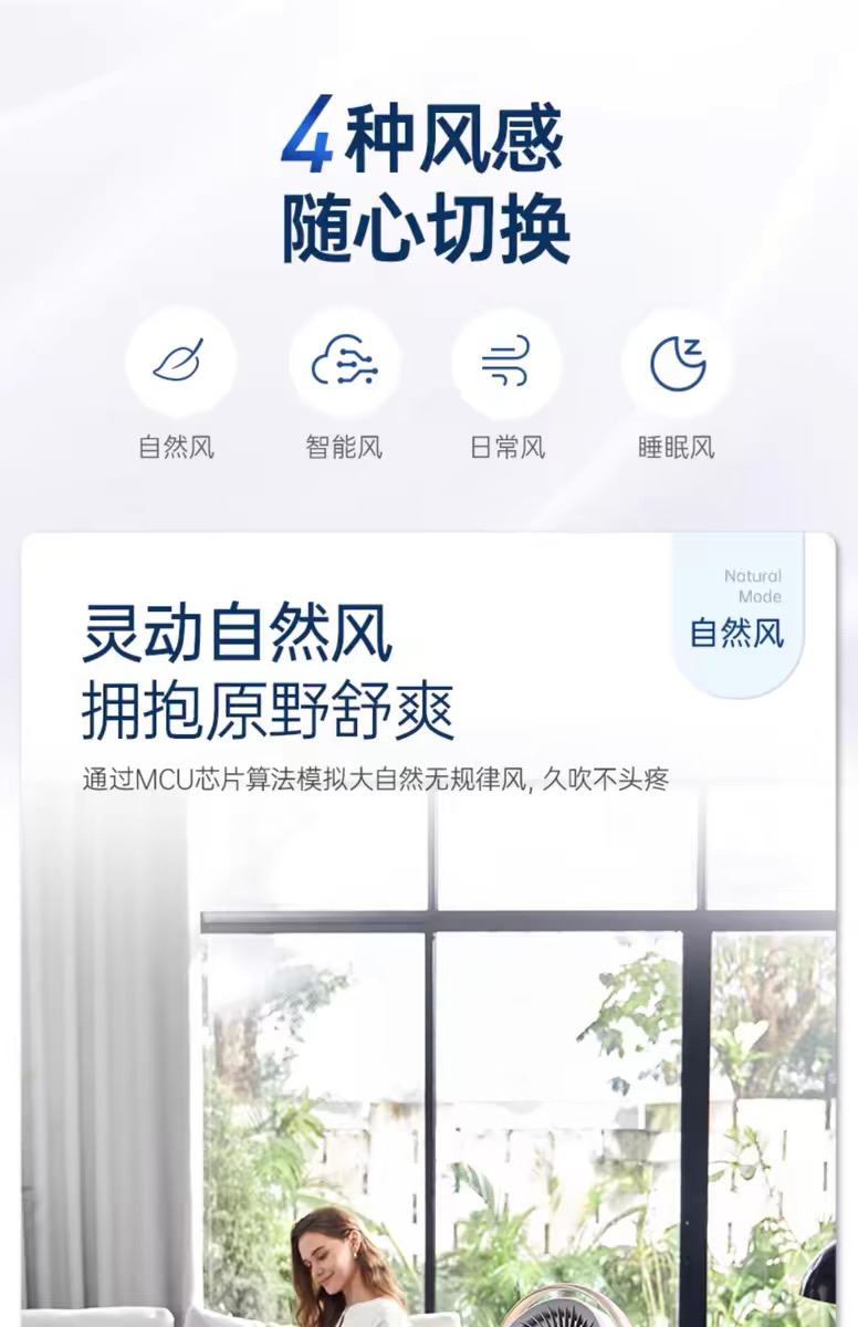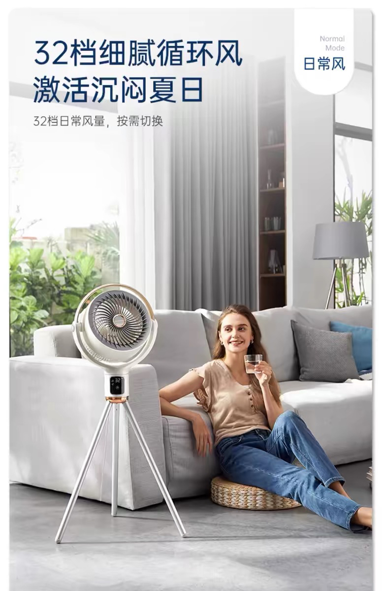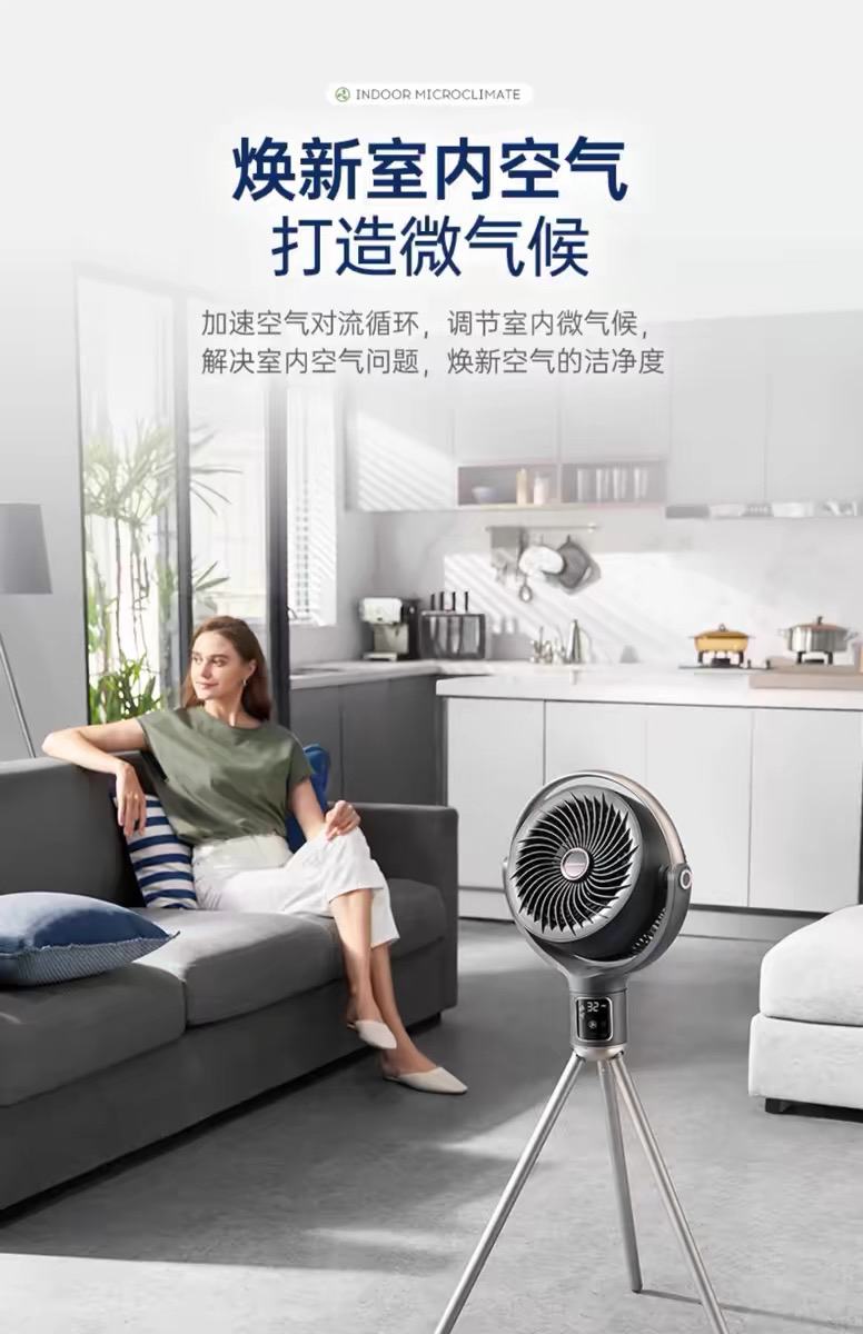 摩飞负离子空气循环扇家用节能摇头立式大风力非静音落地扇电风扇