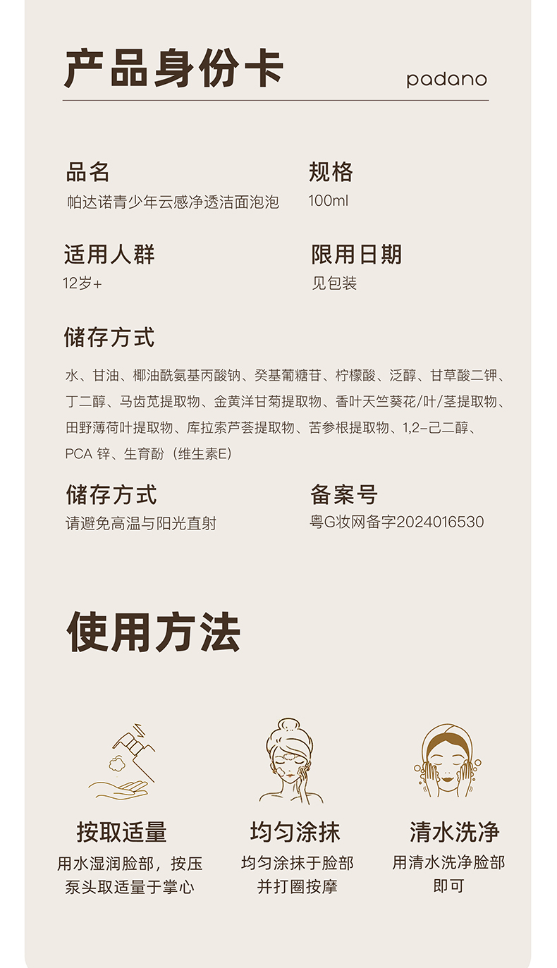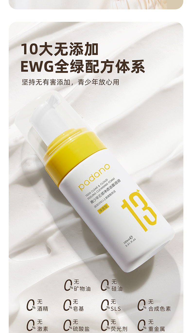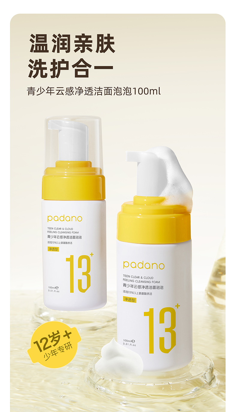 自营(帕达诺)-青少年云感净透洁面泡泡100ml