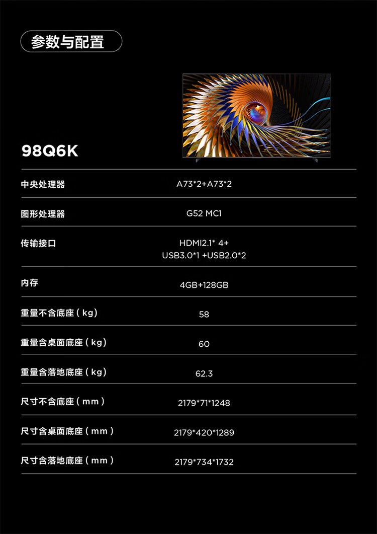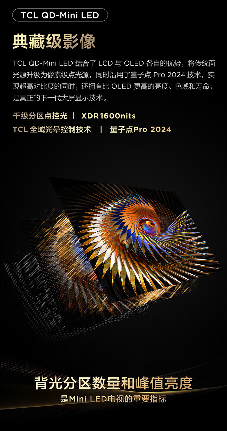 TCL电视98Q6K_98英寸一级能效千级分区点控光XDR1600nitsTCL全域光晕控制技术超薄一体化设计灵控桌面
