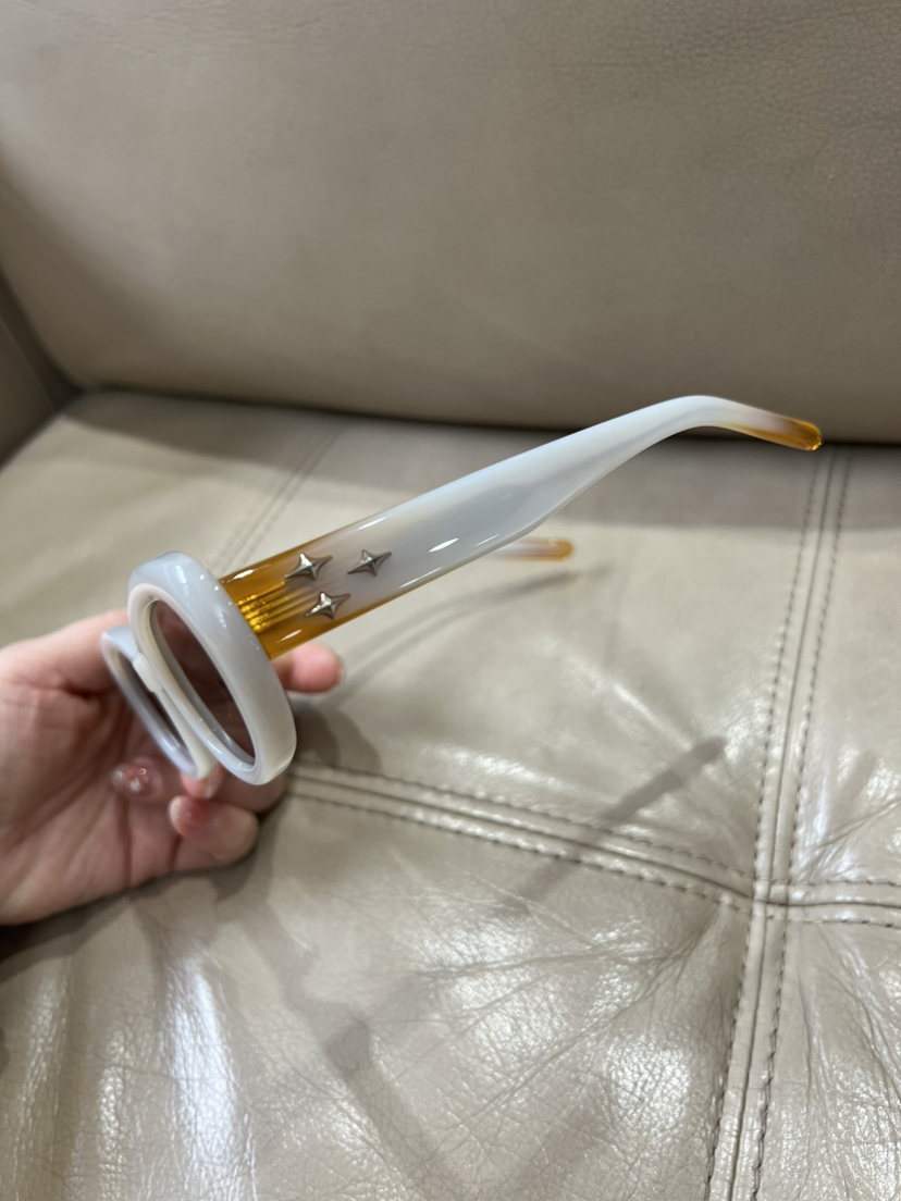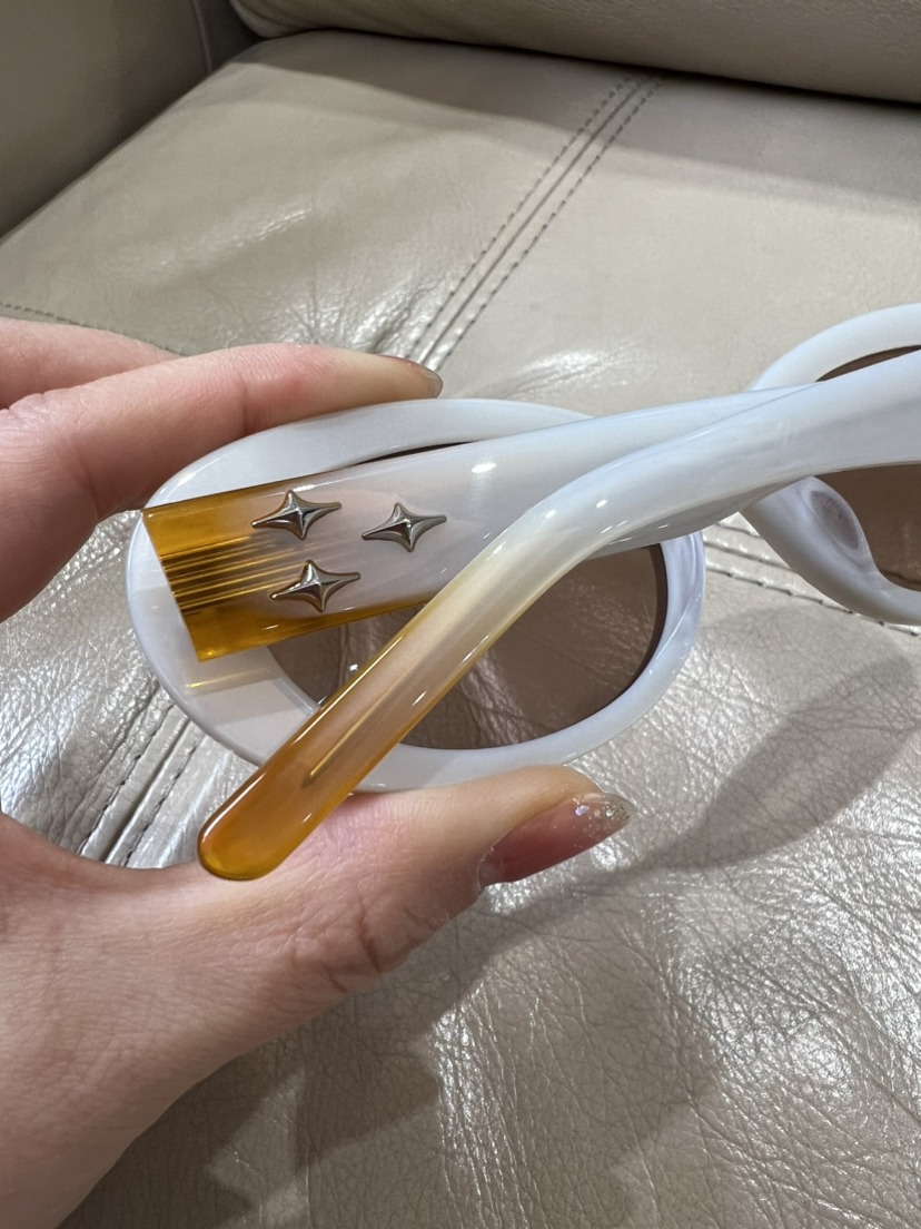 EVE系列,镜腿三流星,进口板材,通透镜片,不算超轻,结构合理,带上不累,整体宽度14.5cm,不压脑门,平面镜片,塌鼻梁高颧骨也是OK滴。正常脸型,都可以入手EVE。