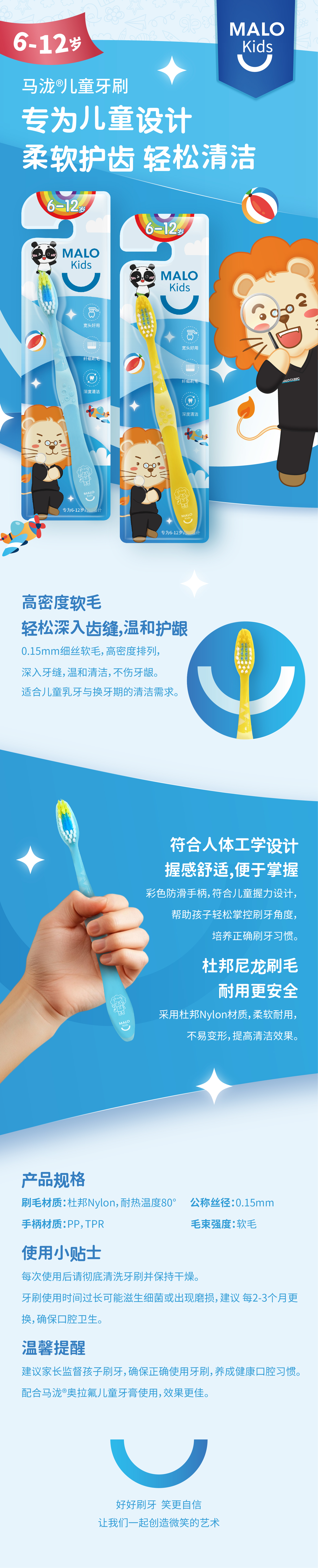 马泷®儿童牙刷6-12岁(颜色不可选,随机发)