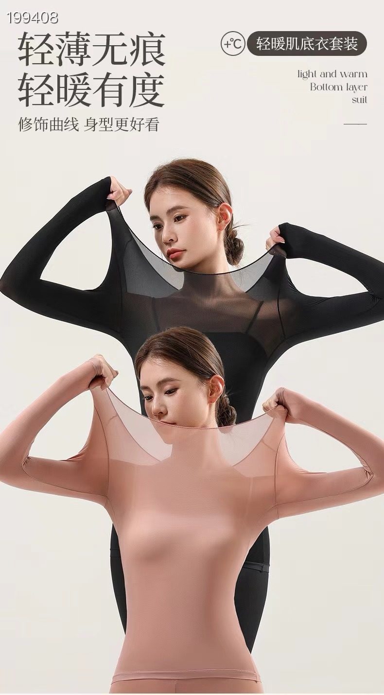 【59.9/2套】芬腾同款轻暖肌底衣套装女秋冬玻尿酸无痕高弹保暖美肤自发热秋衣秋裤套装