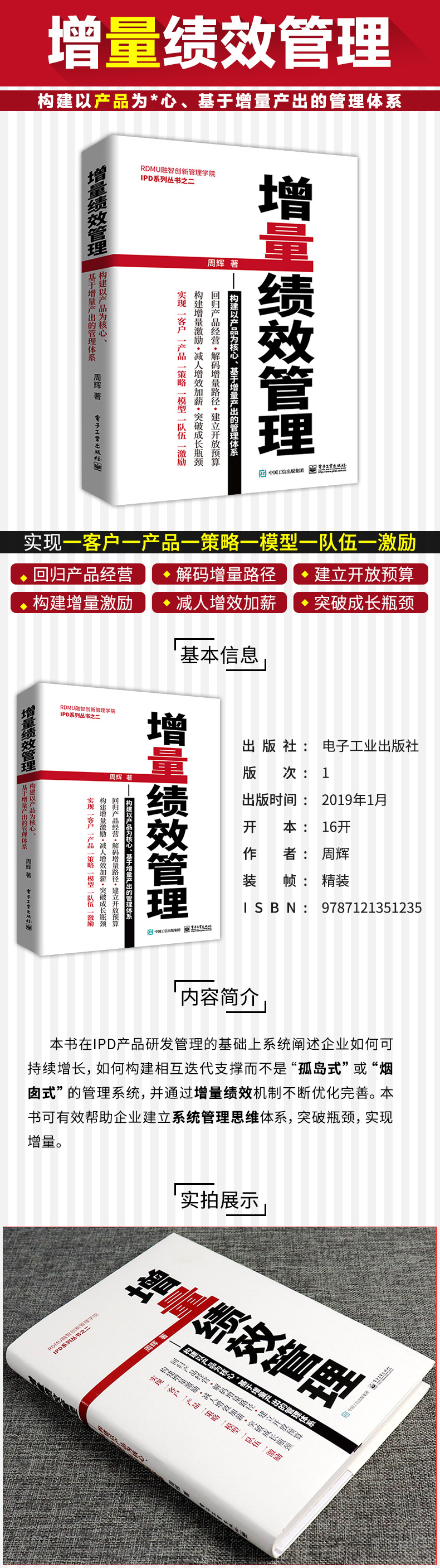 本书在IPD产品研发管理的基础上系统阐述企业如何可持续增长,如何构建相互迭代支撑而不是“孤岛式” 或“烟囱式” 的管理系统,并通过增量绩效机制不断优化完善,让企业首先进行客户细分,定位优质增量客户,针对优质客户寻找解决方案和进行产品与技术研发,确定战略控制节点,聚焦配置资源并针对核心员工设计增量绩效,提升任职资格和能力,建立“一客户一产品一策略一财务模型一队伍一增量激励”的精细盈利模式,并通过经营分析和预警让企业在不断解决优质客户问题的同时,不断纠偏,持续成长。本书可有效帮助企业建立系统管理思维体系,突破瓶颈,实现增量。