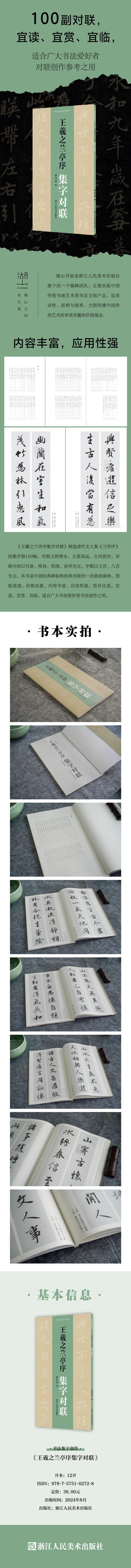 集字联是对联艺术与书法艺术的融合,创作集字联不仅是一种学习撰写对联的方法,也是书法学习的重要手段。古人创作的这些集字联大多文辞隽永、立意高远,具有一定的文学价值,可作为书法创作的文本内容。此外,由于对联中的字基本都出自所集碑帖,书法学习者只要具备一定的临摹能力,就可以进行初级的创作,书写一副完整的对联。本书精选清代文人集《兰亭序》的集字联一百副,并配上清晰的图版,文辞清新易懂,内容以写景、修身、明理、治学为主,字数以七言、八言为主,适合广大书法爱好者在创作时作为参考。