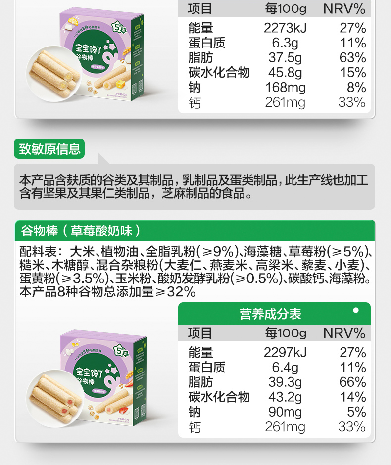 宝宝馋了 高钙谷物棒(草莓酸奶/坚果牛奶/椰子奶酪) 60g*2 多规格