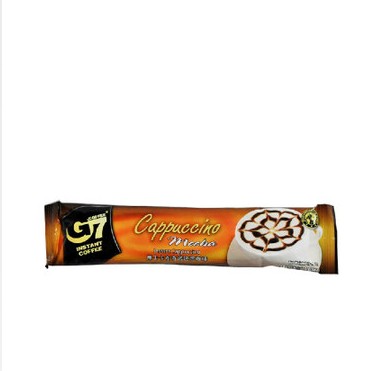 商品名称:中原G7卡布奇诺摩卡味速溶咖啡 净含量:108g(18gx6条) 配料表:白砂糖,奶油,咖啡,可可粉,食用香精 产地:越南 保质期:2年 贮藏条件:请置于阴凉干燥处