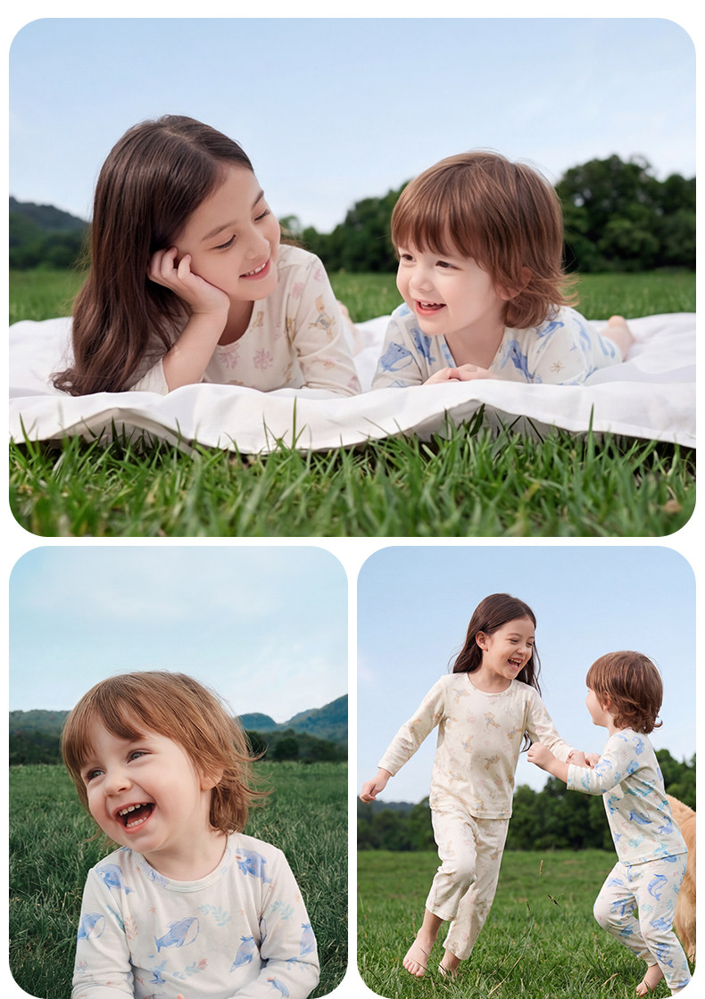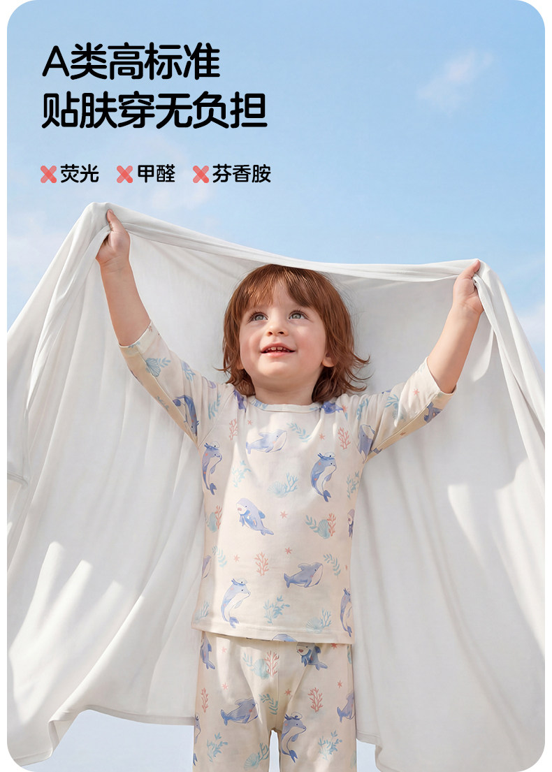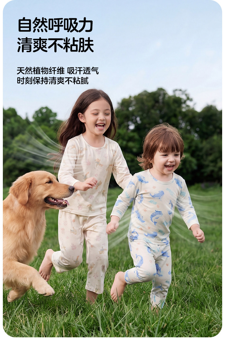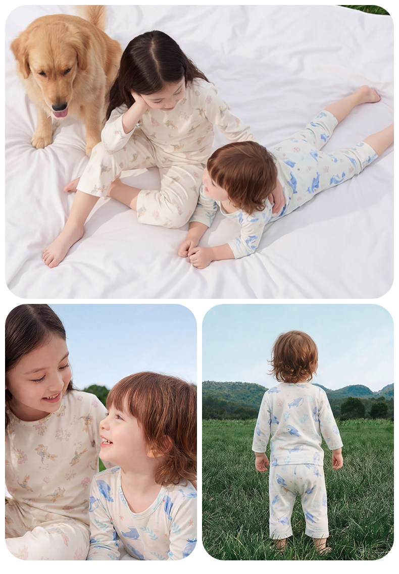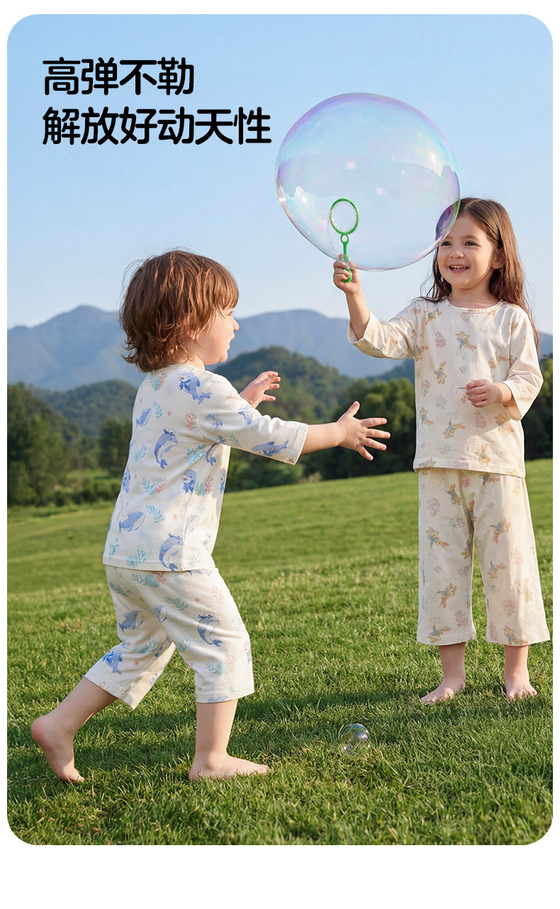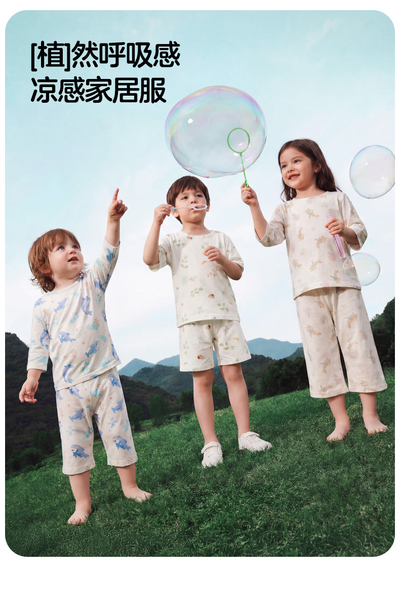 【新品家居服】可优比儿童家居服套装宝宝睡衣竹棉夏季空调服新款透气外出服春夏