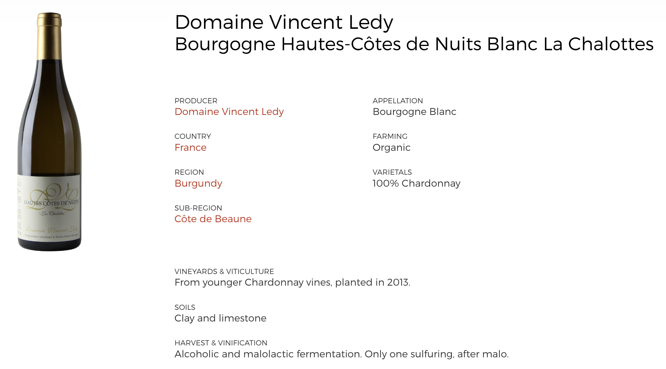 文森特·莱迪酒庄 (Domaine Vincent Ledy) 是勃艮第非常小的酒庄之一。文森特在博讷葡萄酒学校学习了八年之后,于 2006 年亲自创建了该酒庄,占地仅两公顷多一点,目前拥有8个单品,庄全年总产量约8500瓶。