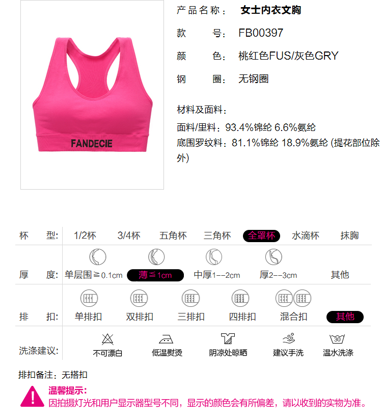 2F【Fandecie芬狄诗】女士薄款光面舒适无钢圈U型背心围文胸FB00397