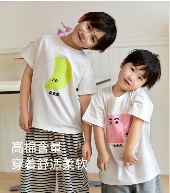 runrungo设计师款! 解放妈妈双手系列!疏水纳米抗污, 关键还是纯棉T!透气不闷热,有弹力。 韩系阔版版型,独家设计蜡笔涂鸦卡通图案, 童趣可爱不稚气,用色彩描绘出孩子眼中的世界。 也摆脱了传统纯棉T松垮变形、易卷边的标签