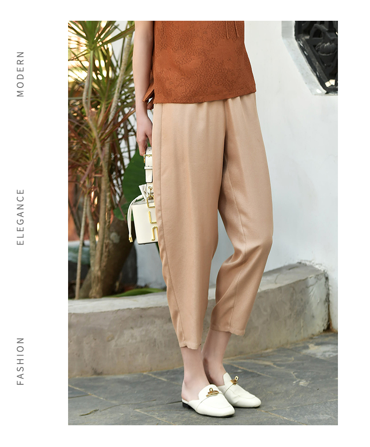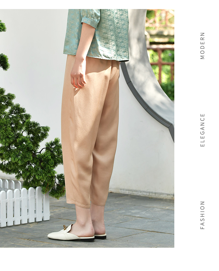 佐尔美夏季新款 真丝莨绸 香云纱 龟裂纹100%桑蚕丝休闲裤女E32KS82