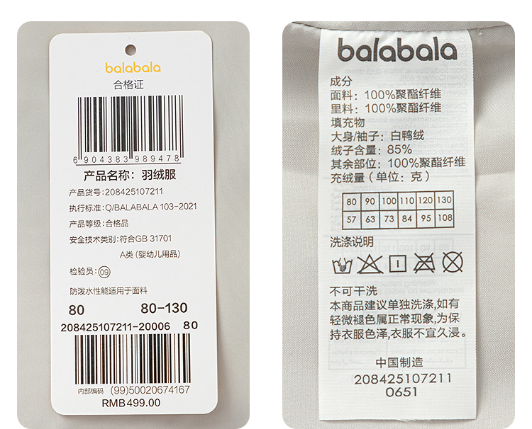 巴拉巴拉balaOne儿童羽绒服女童宝宝厚款保暖冬季男童上衣2025新