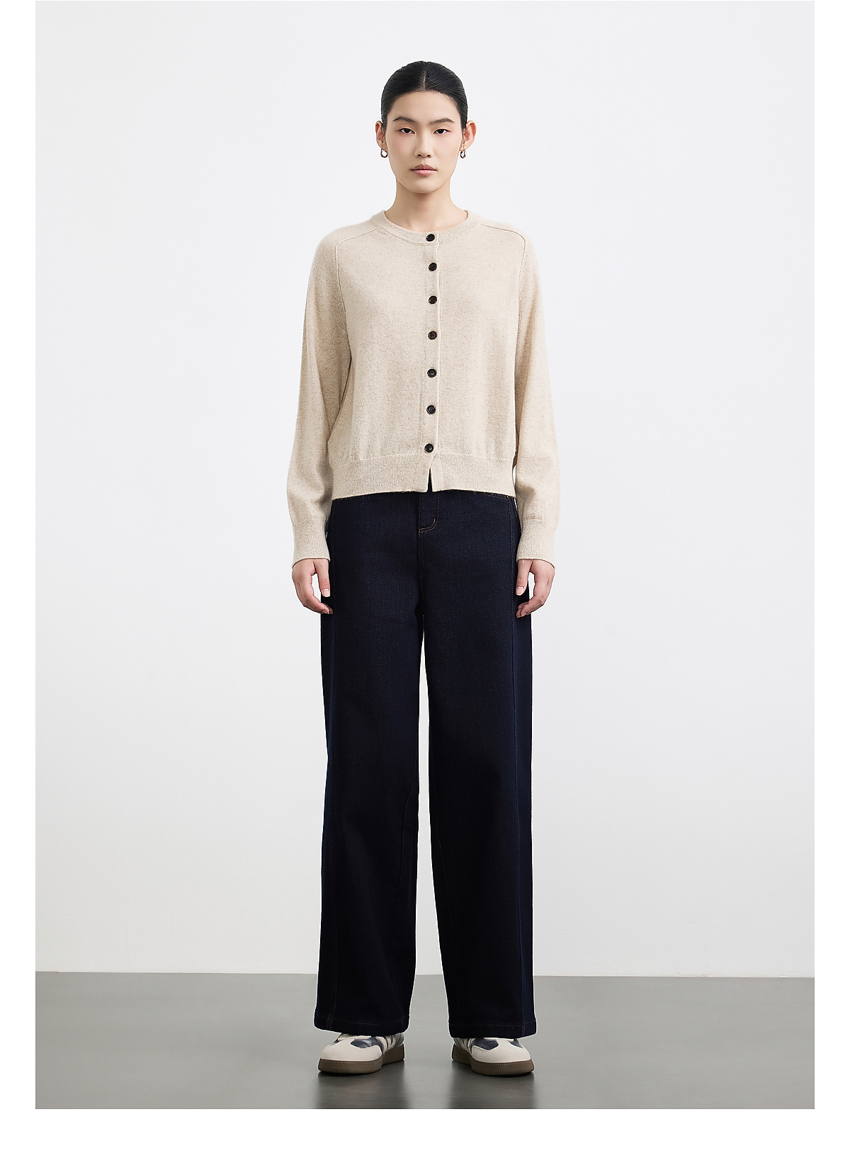 商场同款PURE TOUCH女装25秋冬新款羊绒针织开衫宽松圆领开襟毛衣