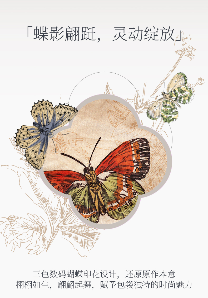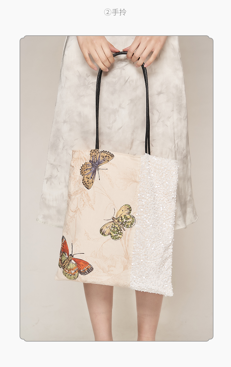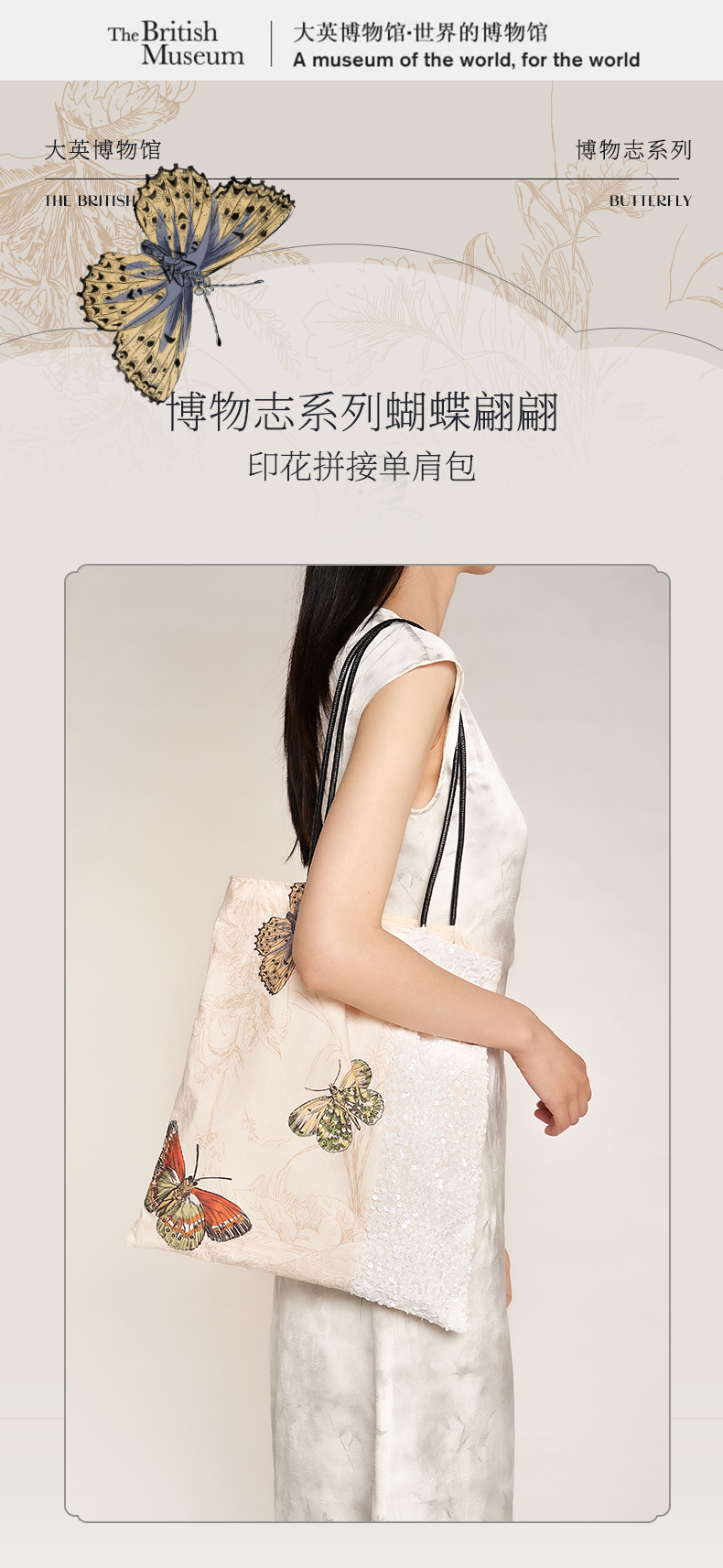 大英博物馆 博物志系列 蝴蝶翩翩印花拼接 单肩包