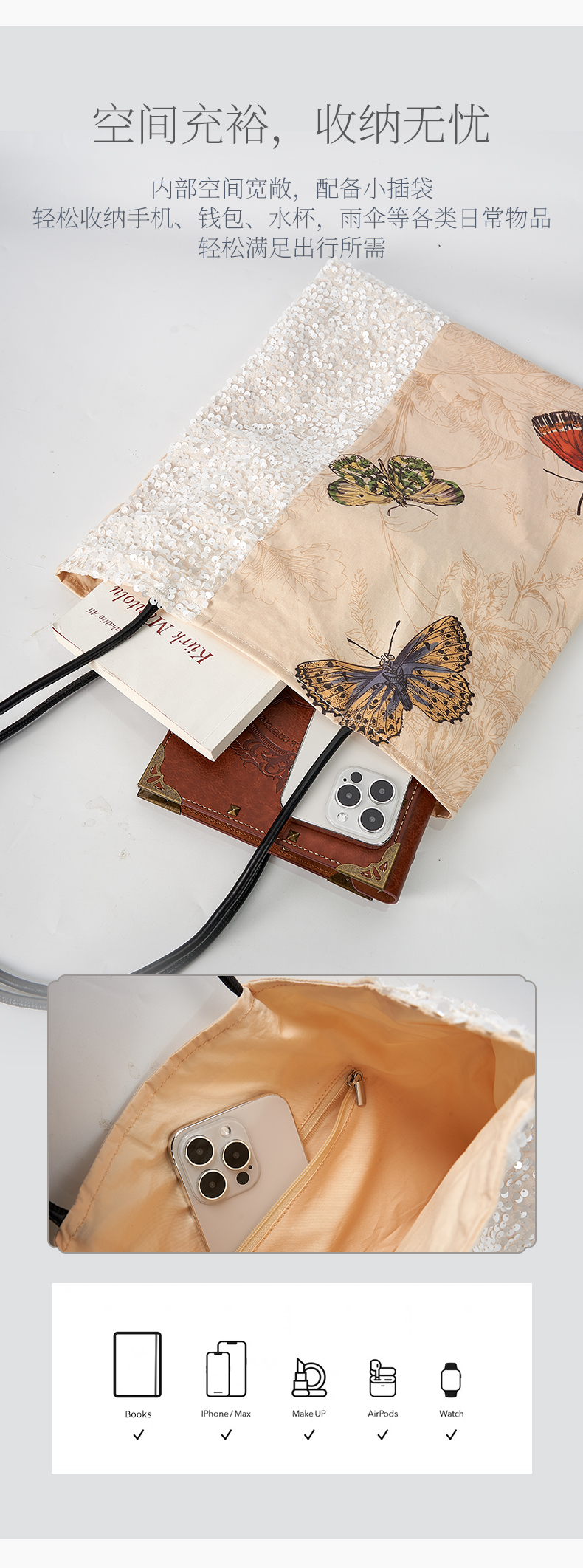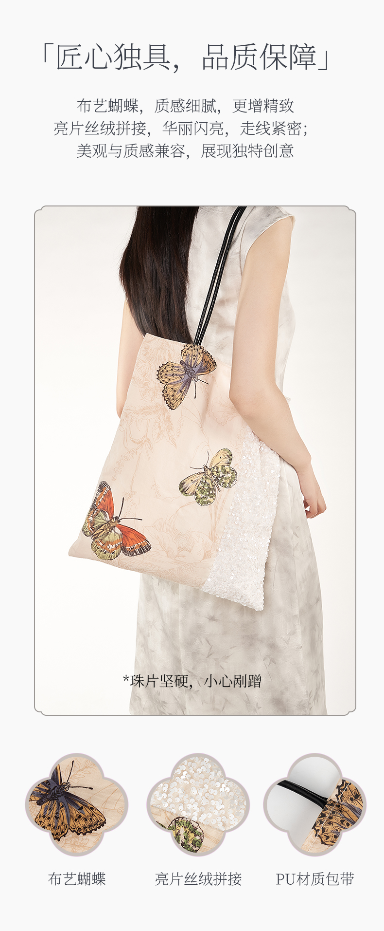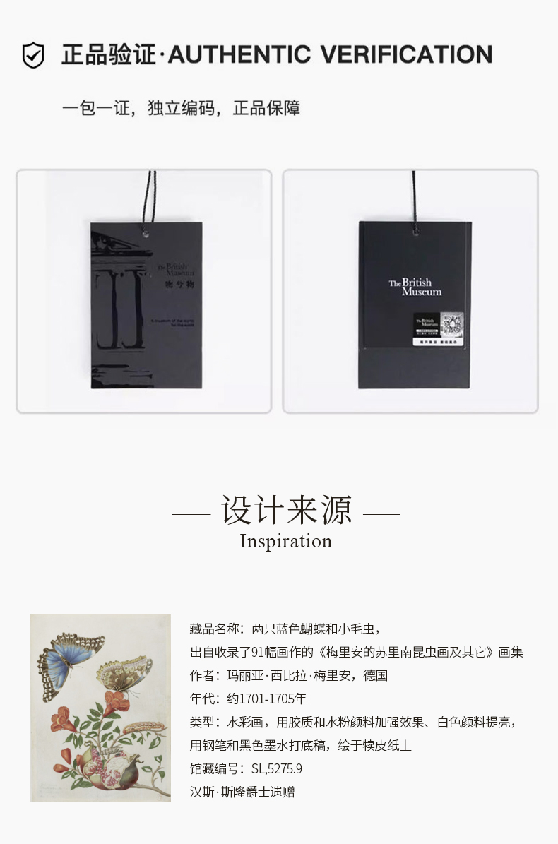 大英博物馆 博物志系列 蝴蝶翩翩印花拼接 单肩包