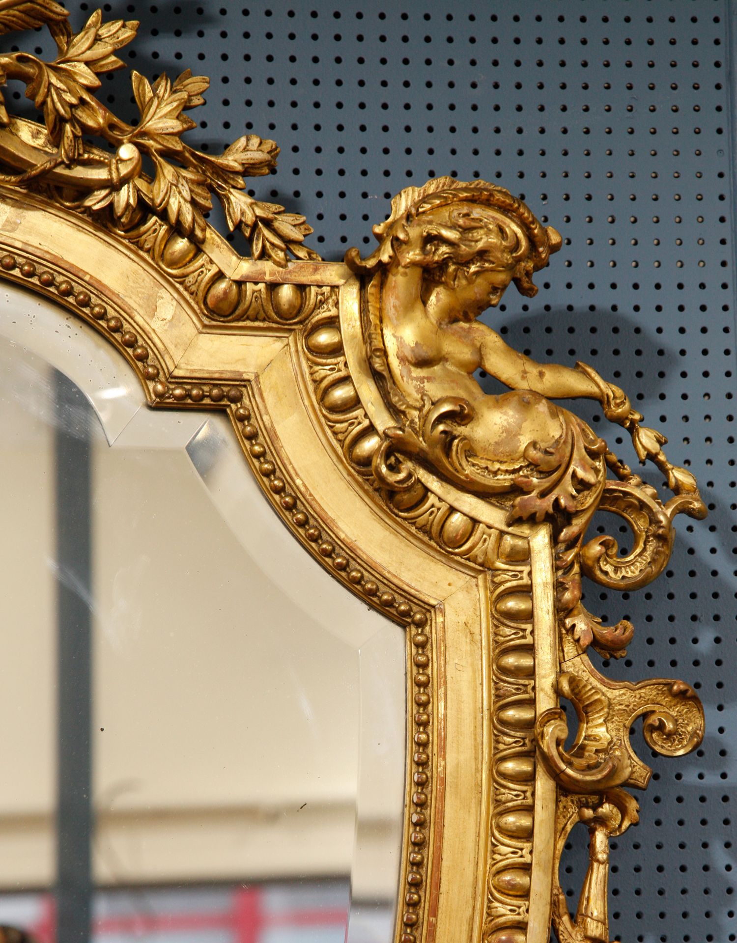 独角鹿西洋古董19世纪法国路易十六风格灰墁木质鎏金古董镜挂镜子