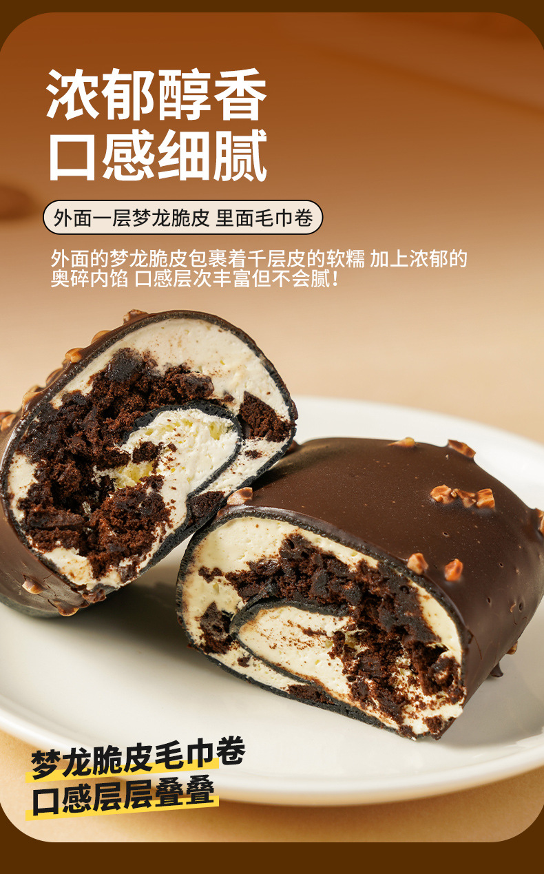 【超好吃❗️脆皮巧克力毛巾卷蛋糕】顺丰京东发货,甄选动物奶油,口感香醇,丝滑爽口!奥li奥夹心碎动物奶油毛巾卷