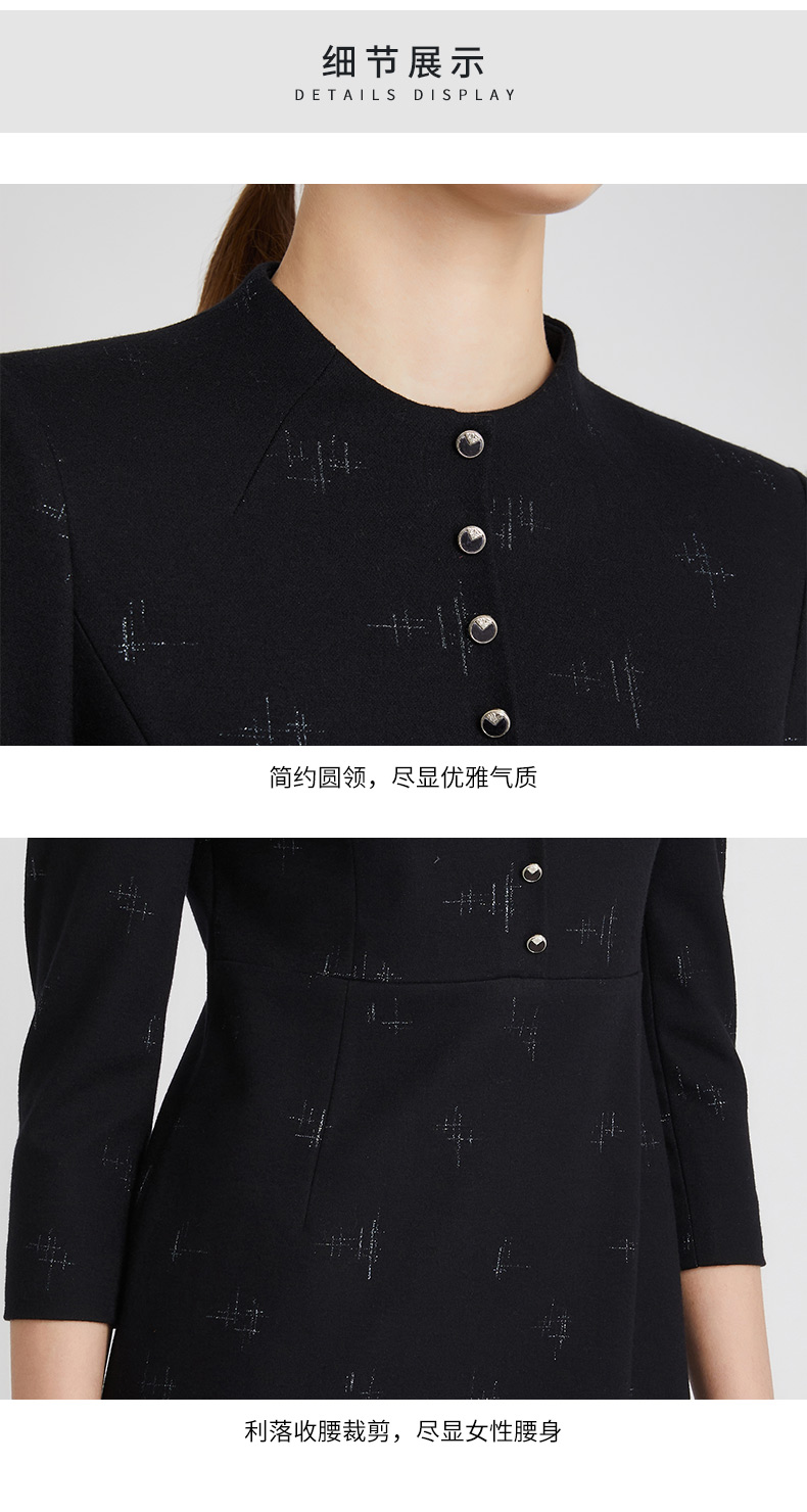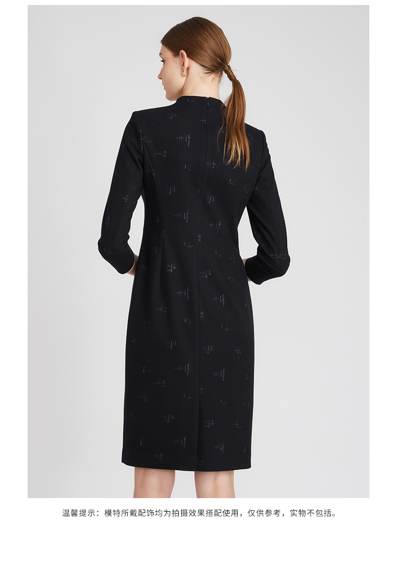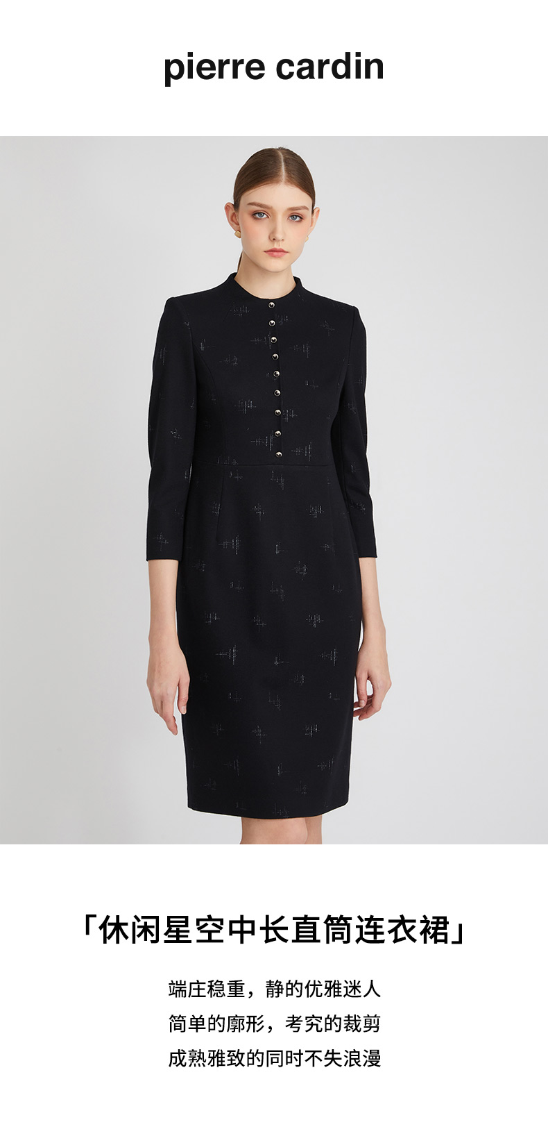 商场同款皮尔卡丹女装冬季新款黑色羊毛中长款连衣裙P2412E2883B0