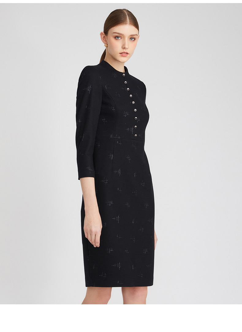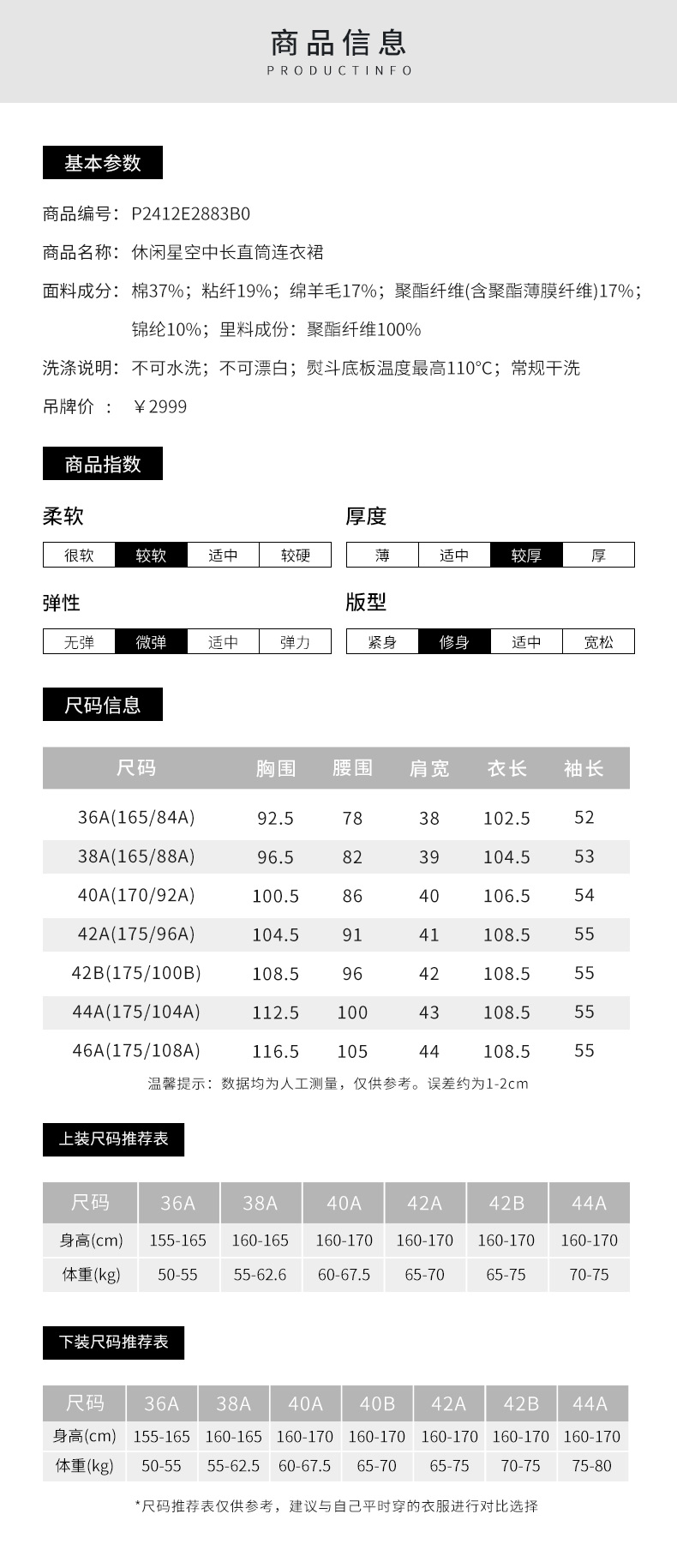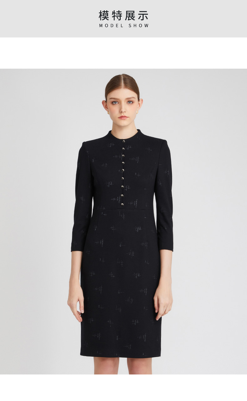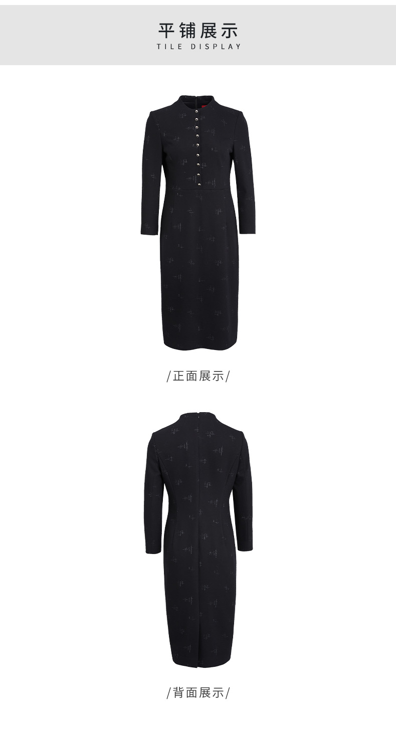 商场同款皮尔卡丹女装冬季新款黑色羊毛中长款连衣裙P2412E2883B0