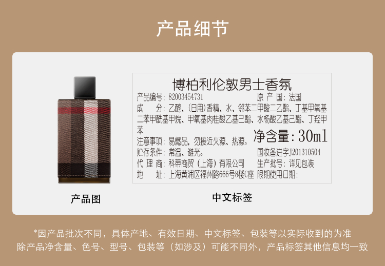 【中欧班列精选】 BURBERRY/博柏利伦敦男士香氛木质花香调香水30ml/50ml/100mlYZ